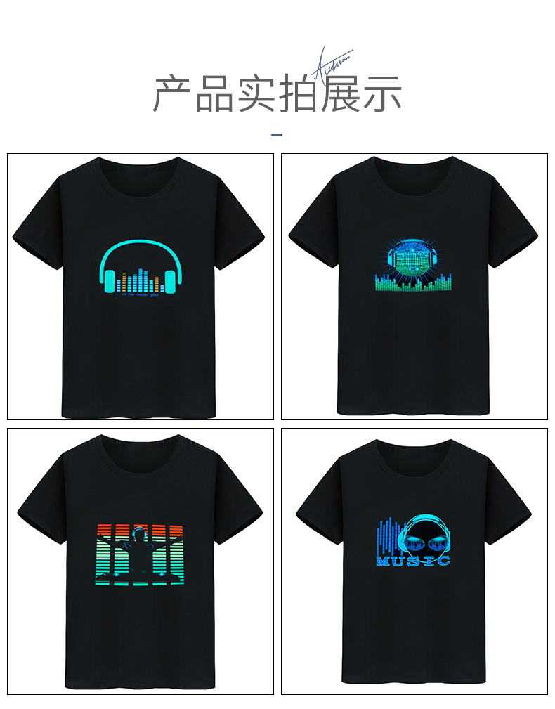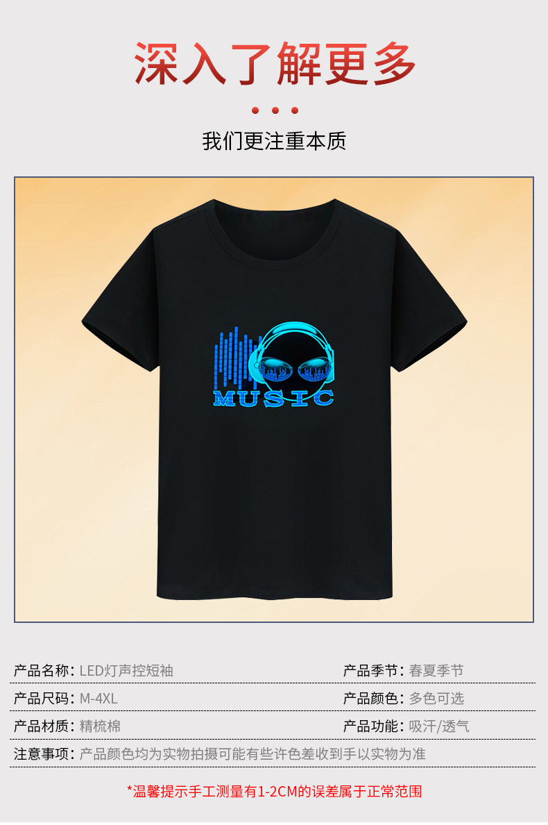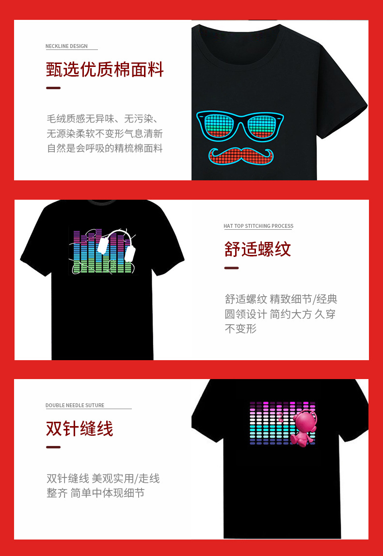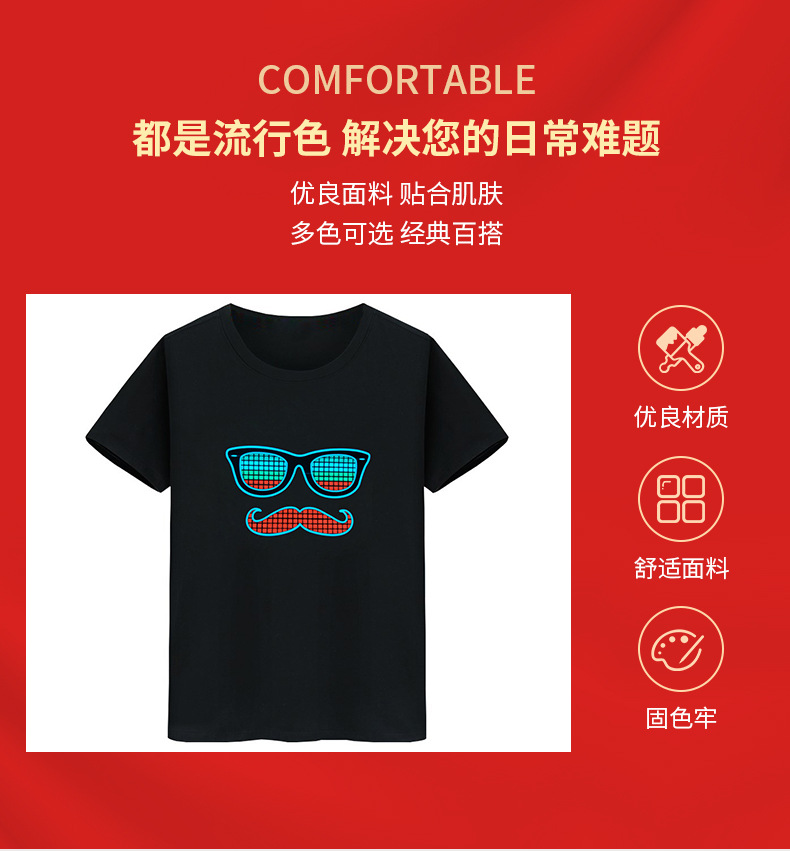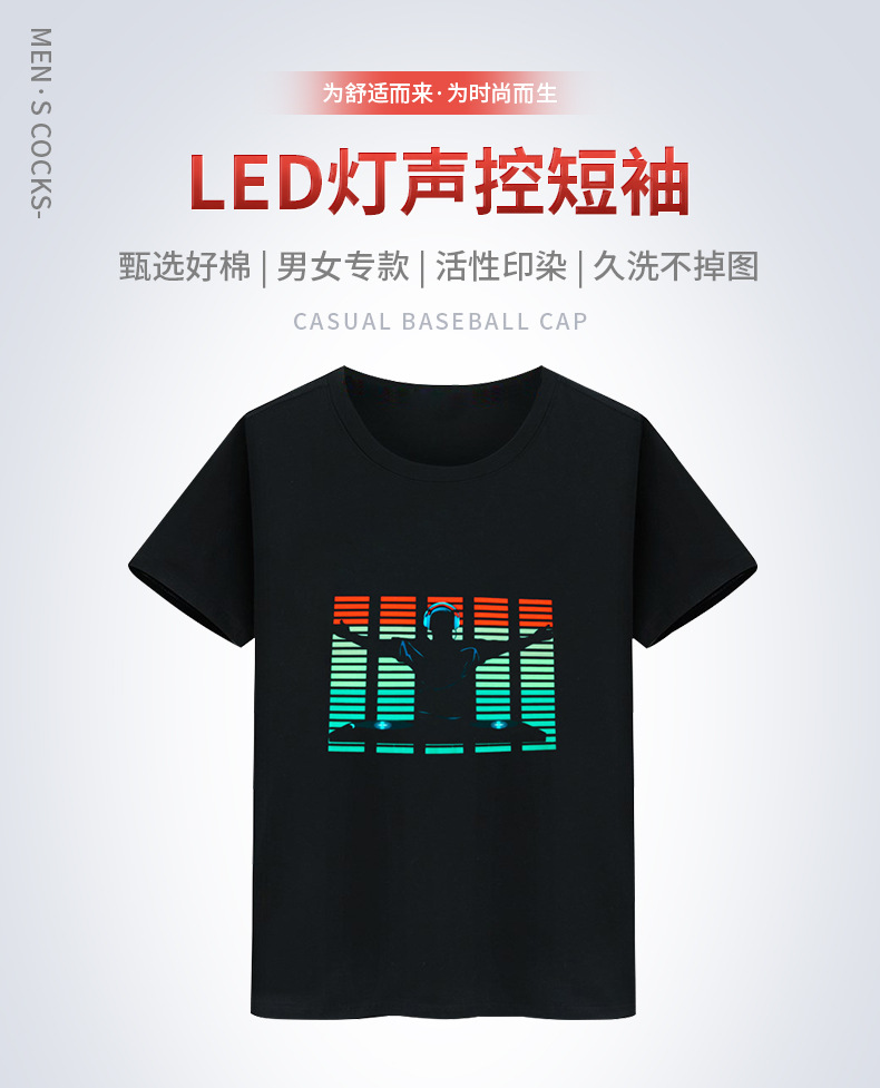 Inalámbrico multi-función táctil interruptor luminoso camiseta tiktok mismo control de voz eléctrica sonido batería red ropa roja flash LED