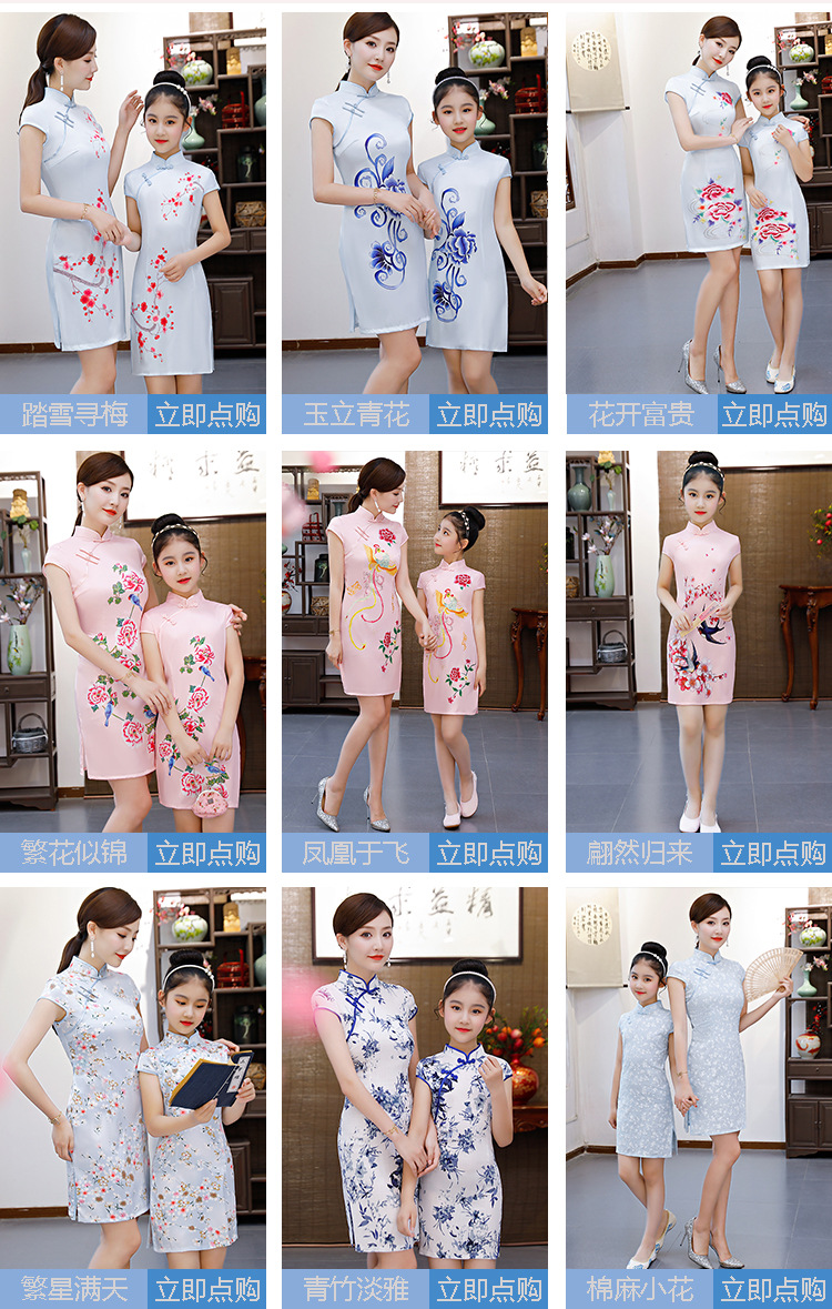 Ropa de padre-hijo ropa de mujer cheongsam para niños estilo chino cheongsam antiguo cintura ajustada pequeño vestido floral slim fit