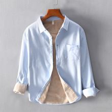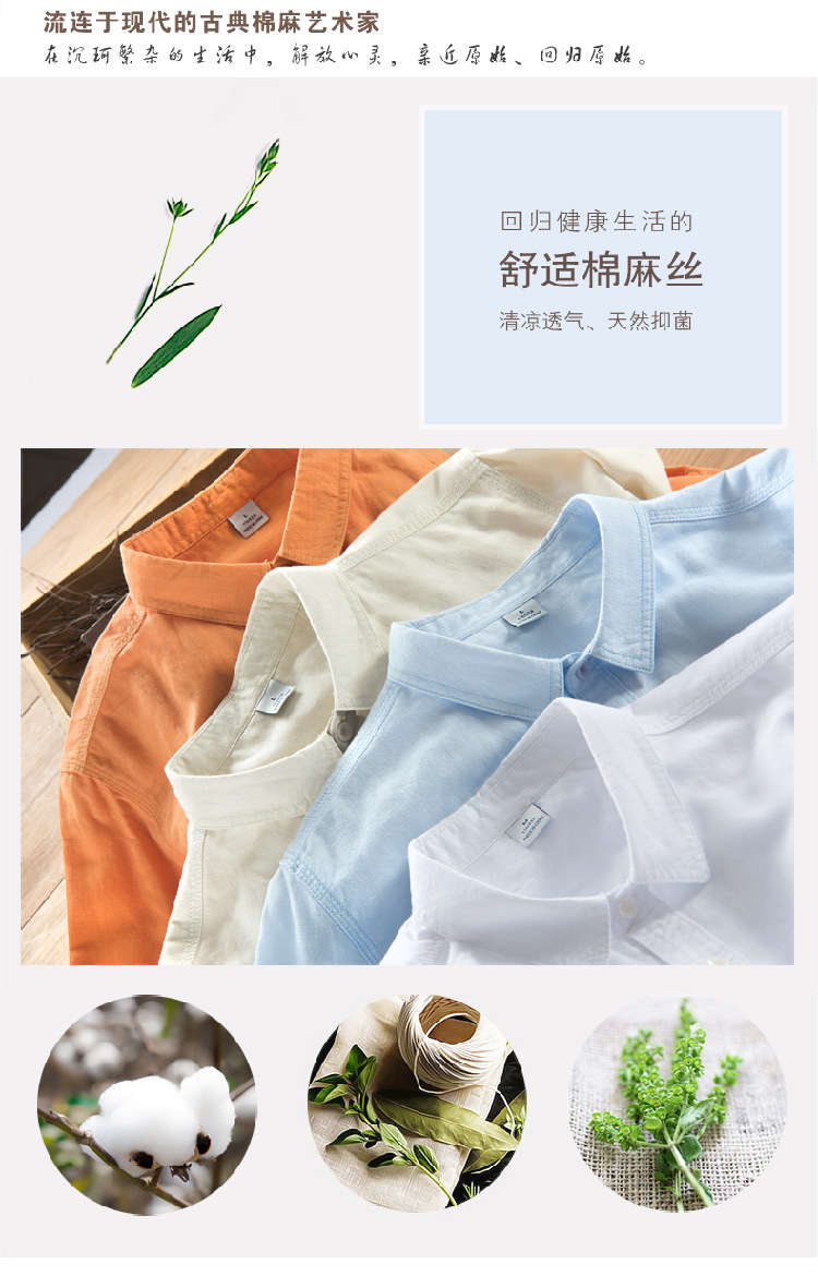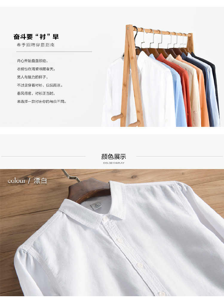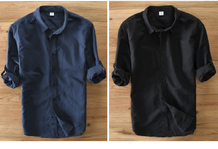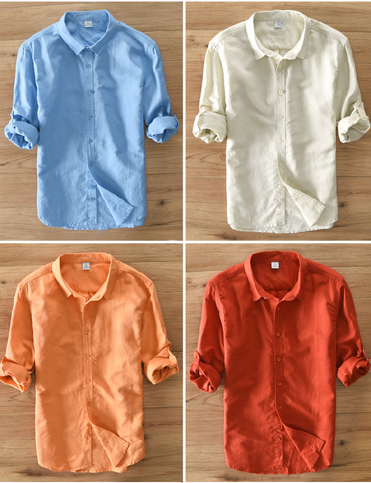 FUENTE Los fabricantes se centran en Four Seasons Camisa de manga larga de algodón y lino de oro para hombres Camisa de hombre casual de negocios juvenil