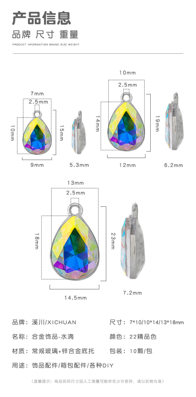 Fabricantes al por mayor gota de agua pulsera colgante simple colgante de aleación de zinc colgante accesorios de joyería de bricolaje pendientes accesorios de pulsera blanco K