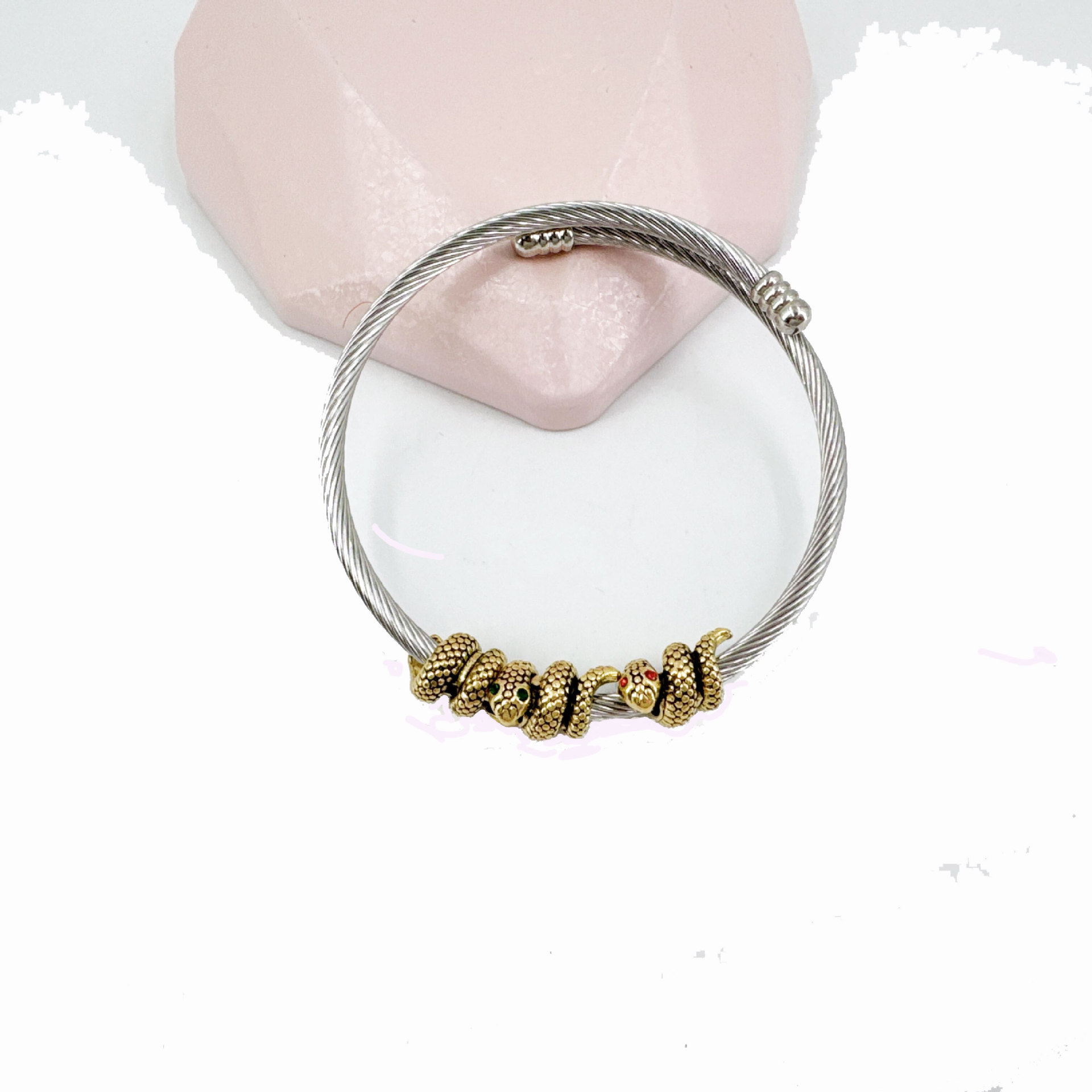 2024 nueva pulsera animal de aleación perlas sueltas vintage accesorios de joyería en forma de serpiente tejida a mano material de pulsera de estilo étnico