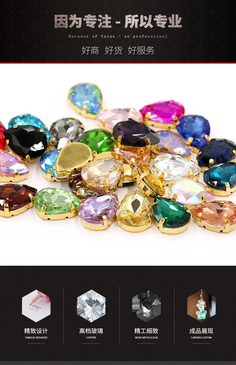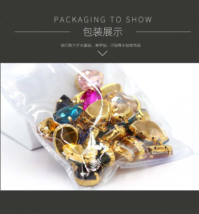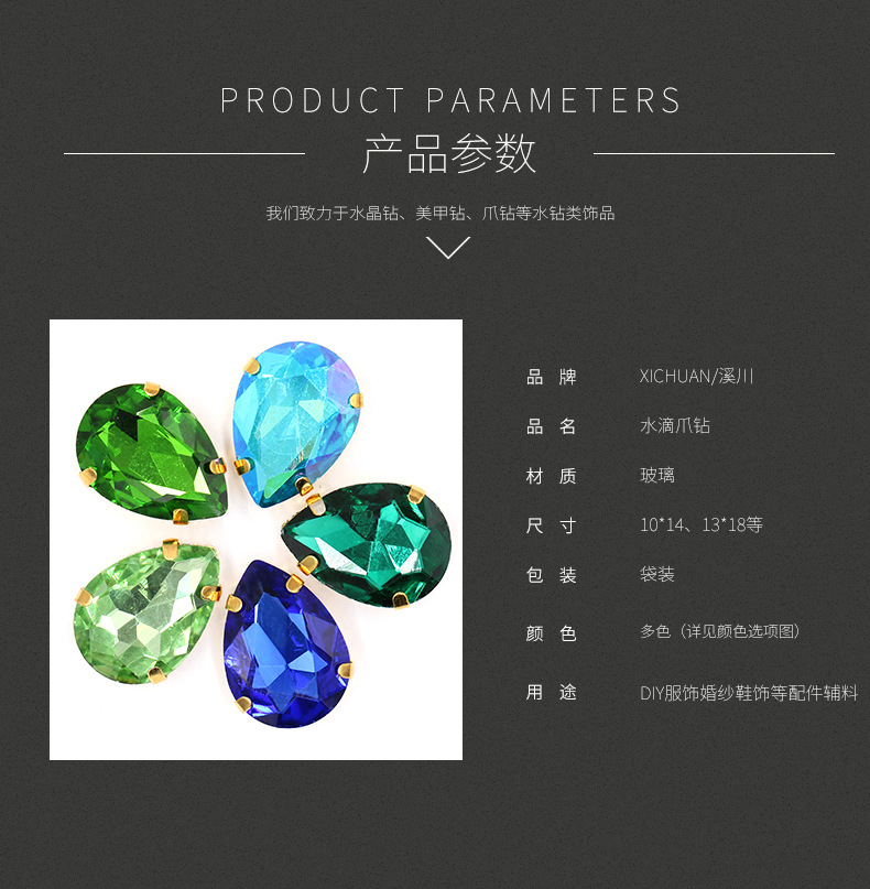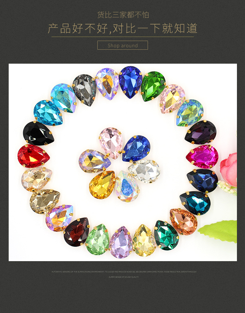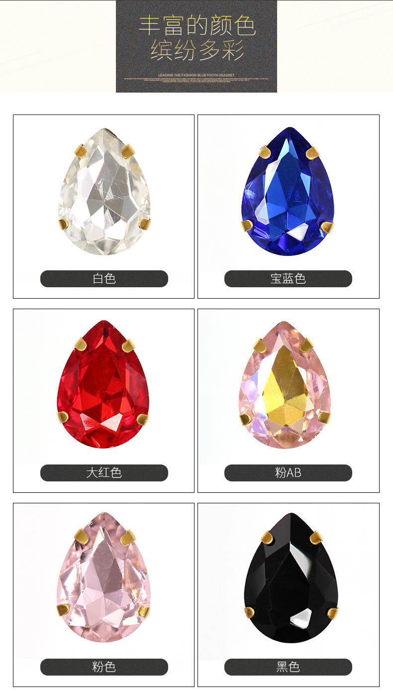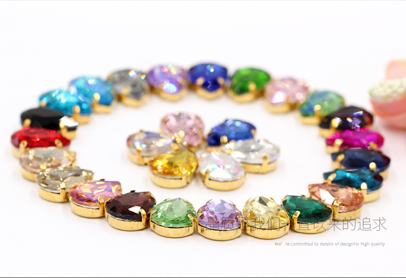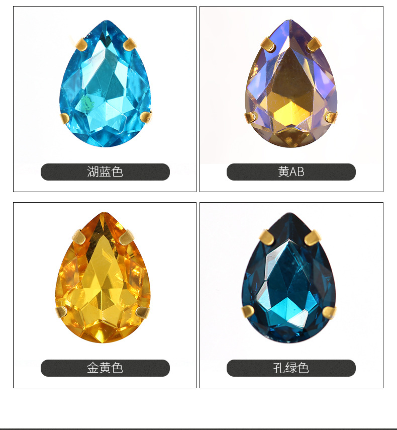 Suministro directo de agua con fondo de oro, gota de agua, cristal, diamante, vestido de novia, accesorios de joyería de cristal, accesorios, gota de agua multicolor, diamante de garra
