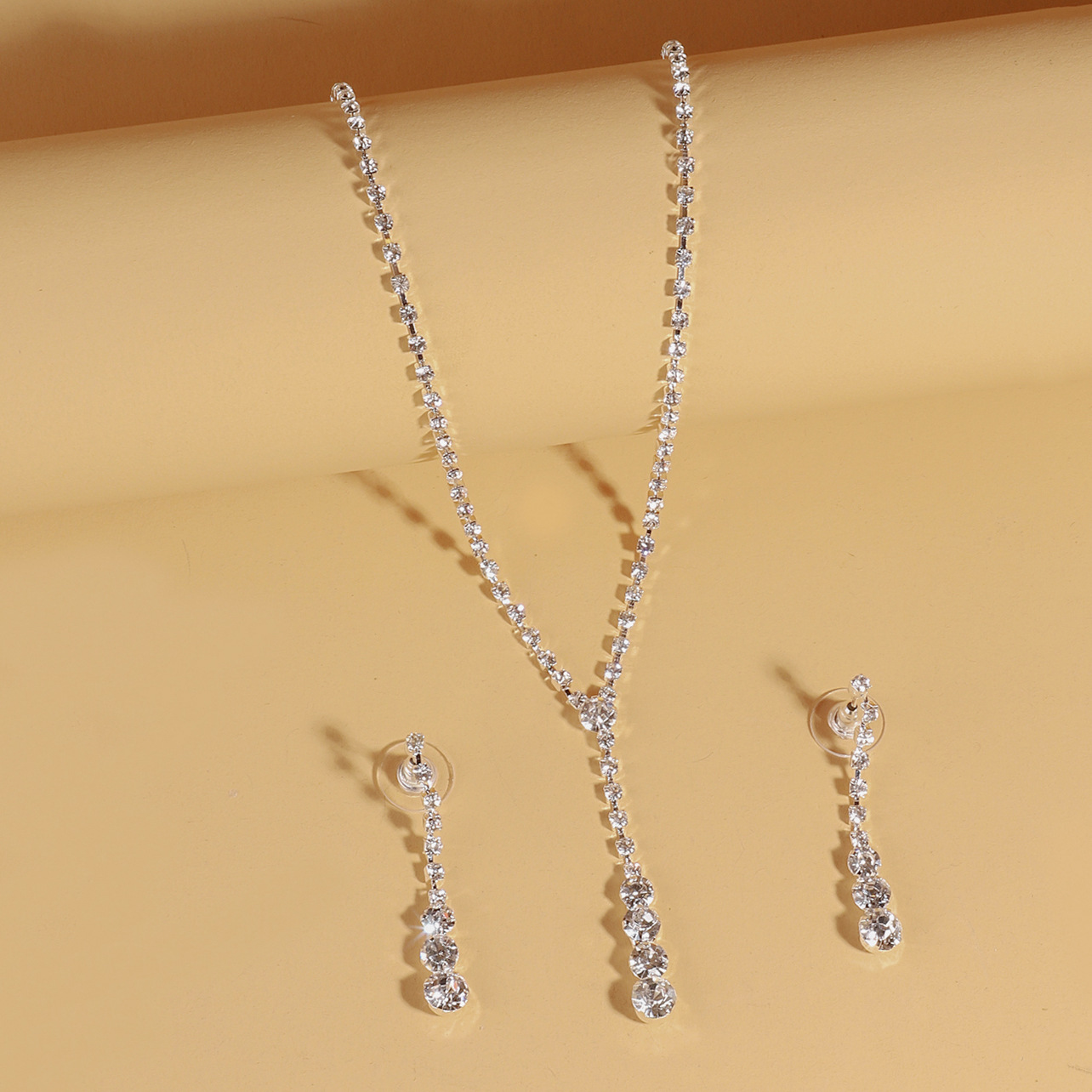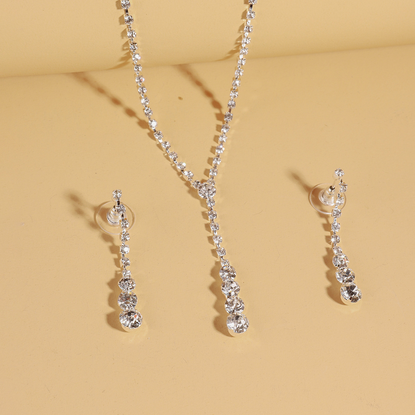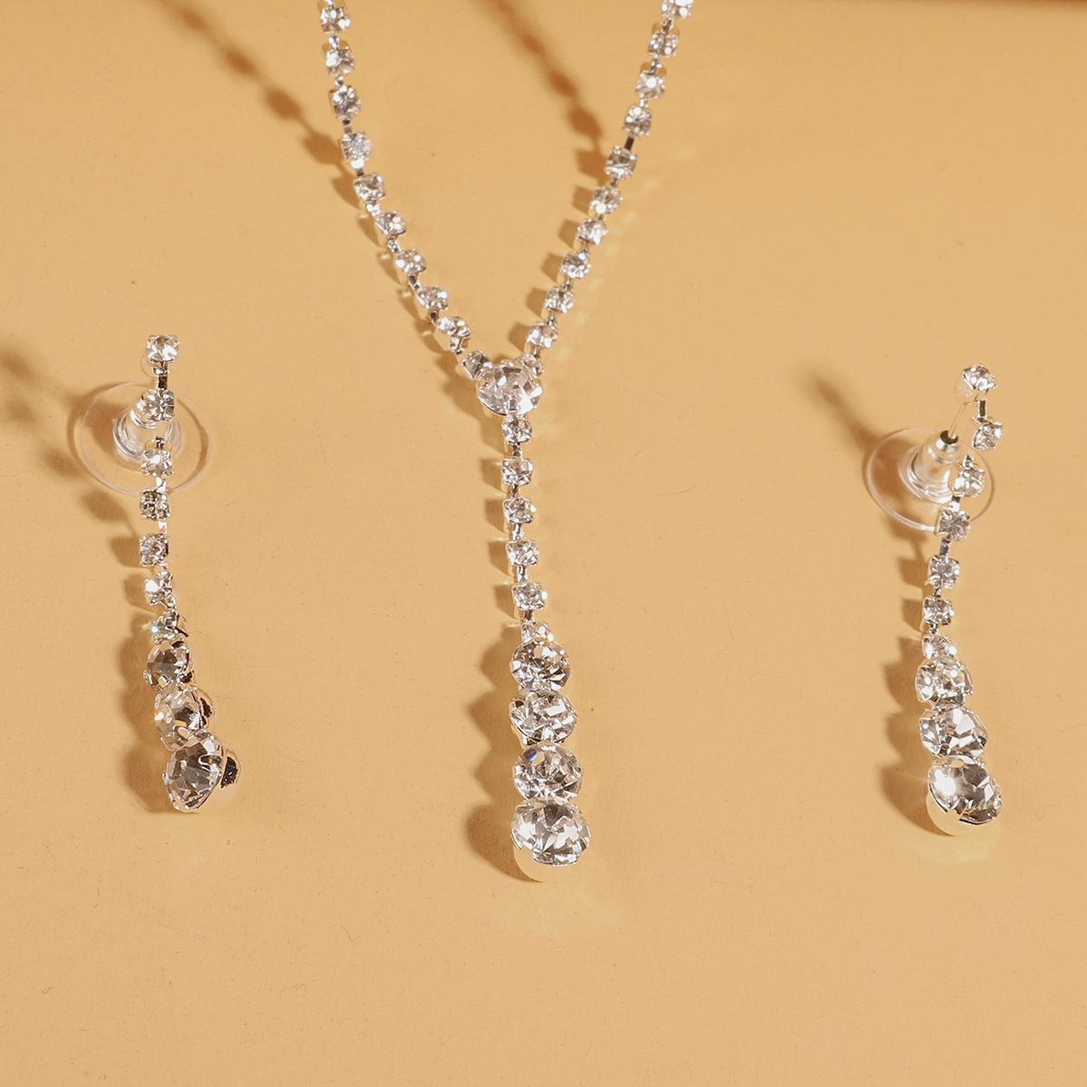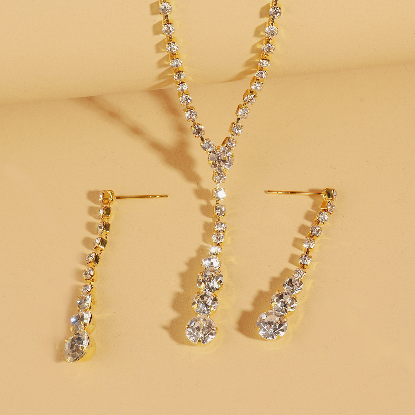 Joyería de la boda europea y americana nupcial gota de agua rhinestone collar oído pin traje de dos piezas conjunto femenino joyería nupcial