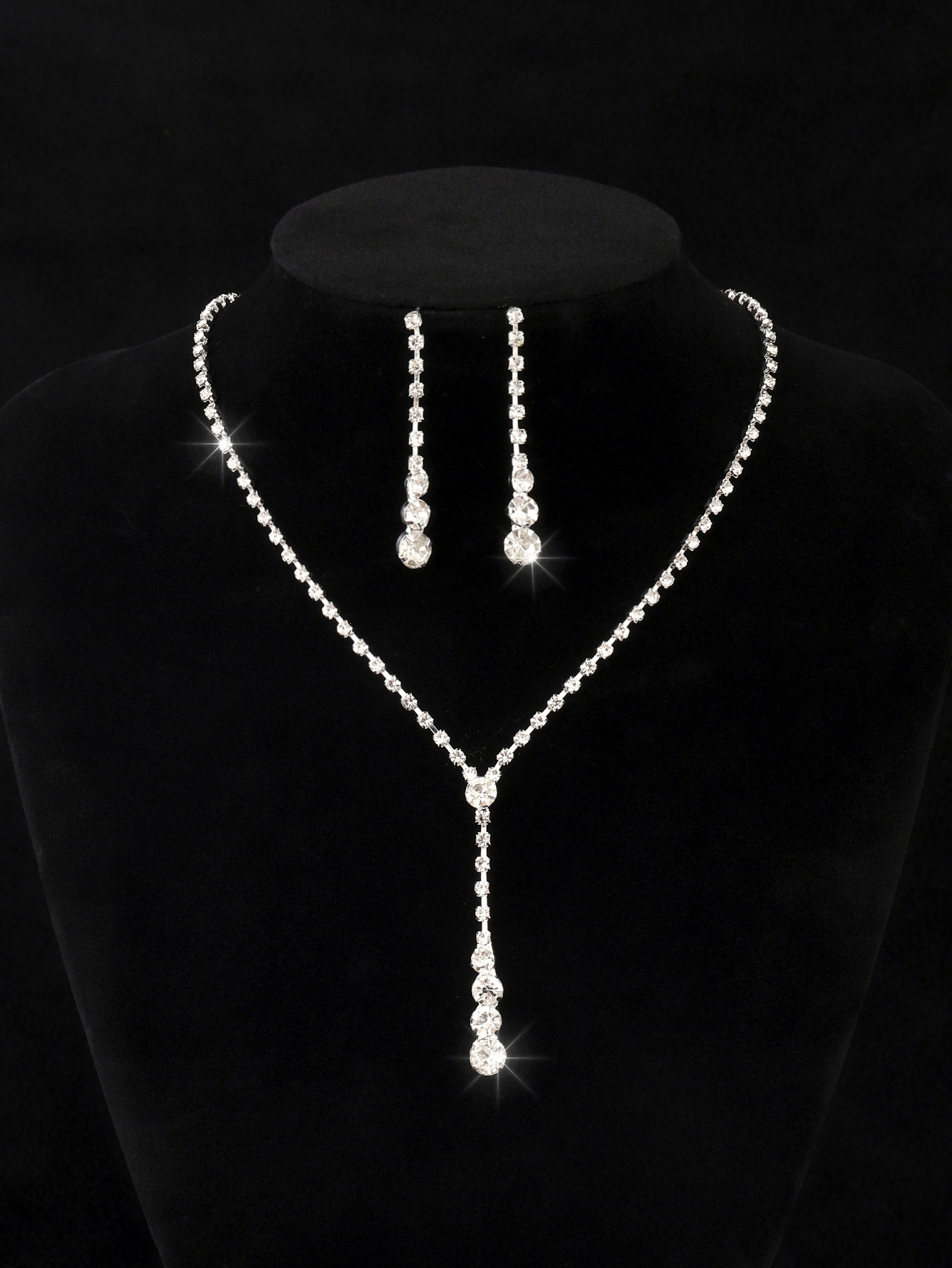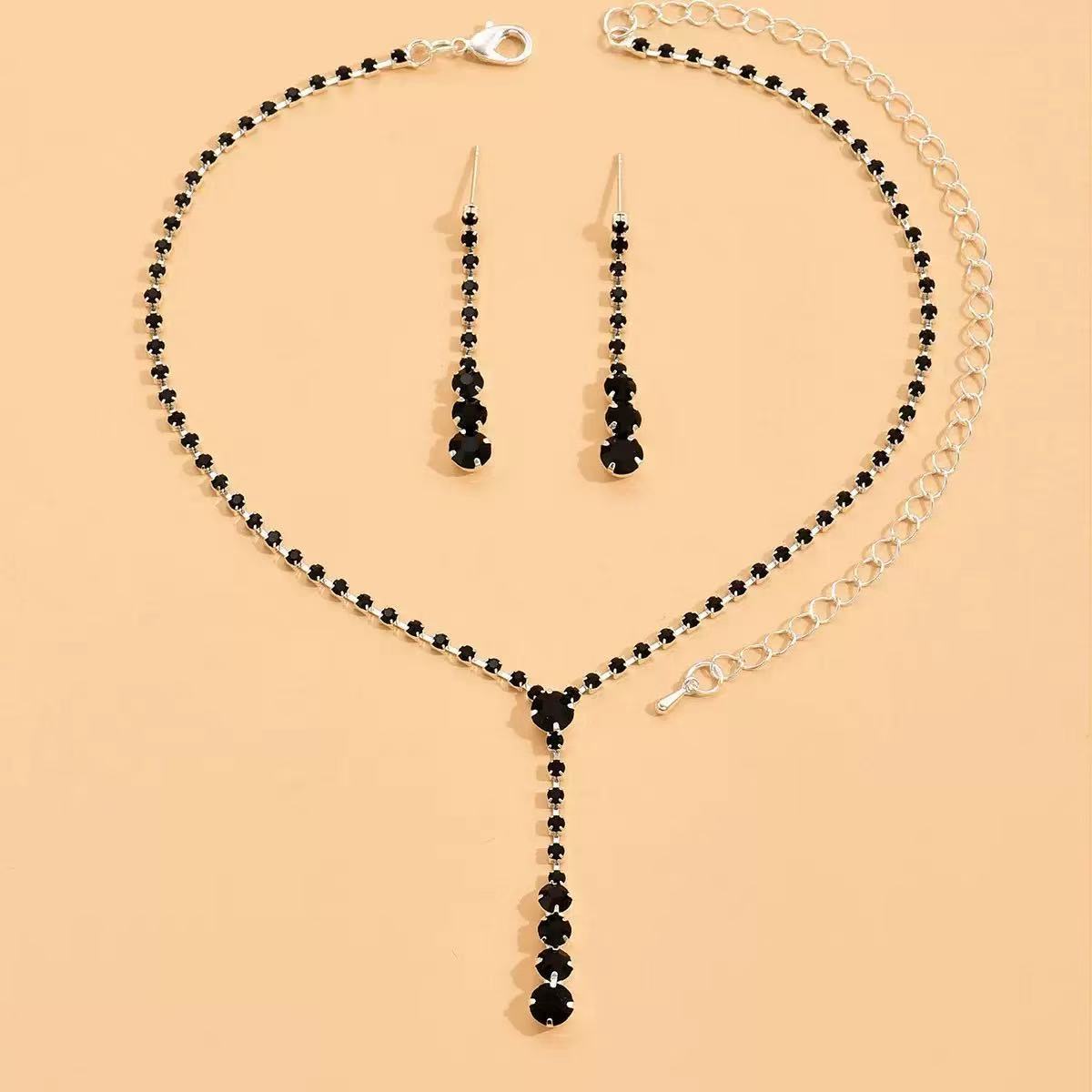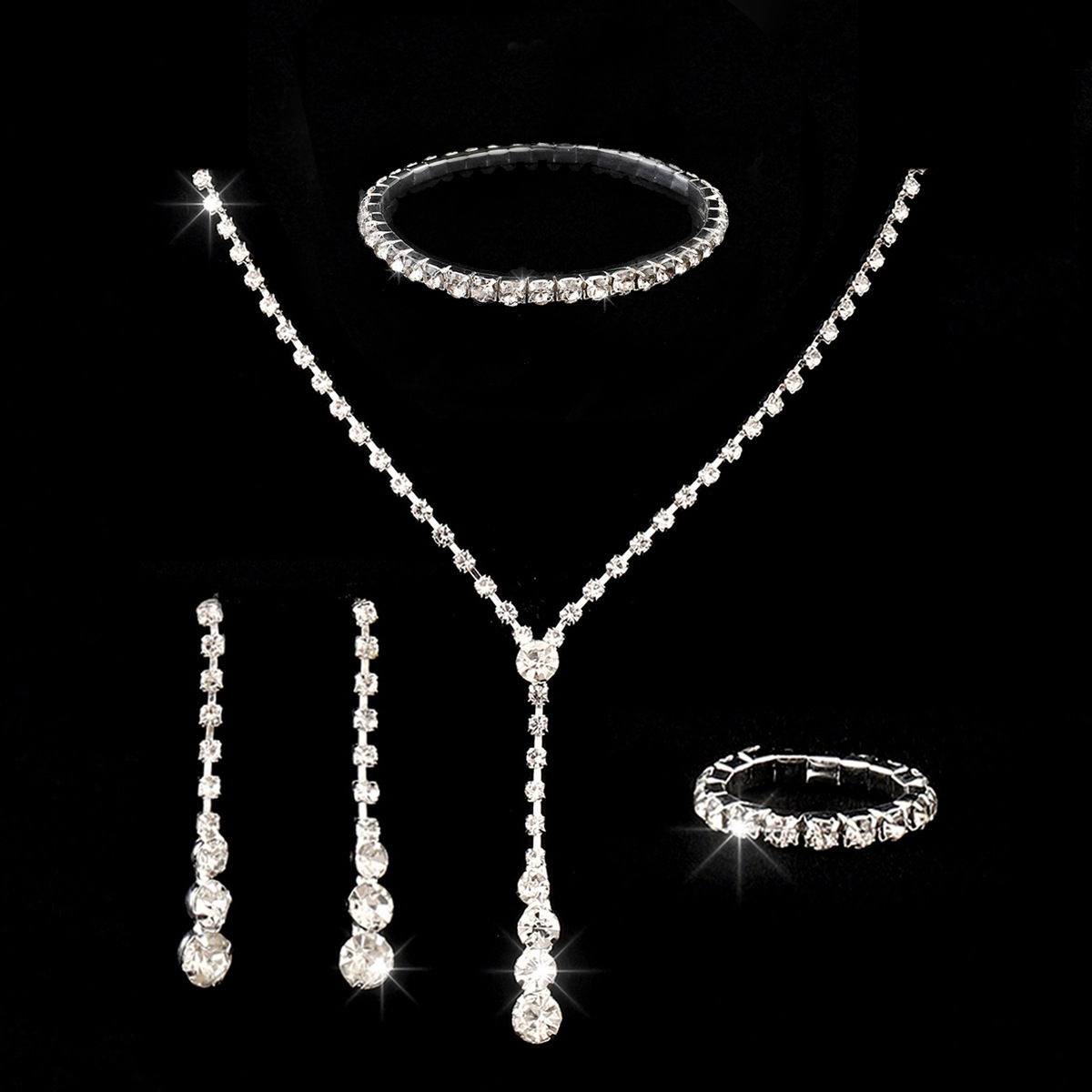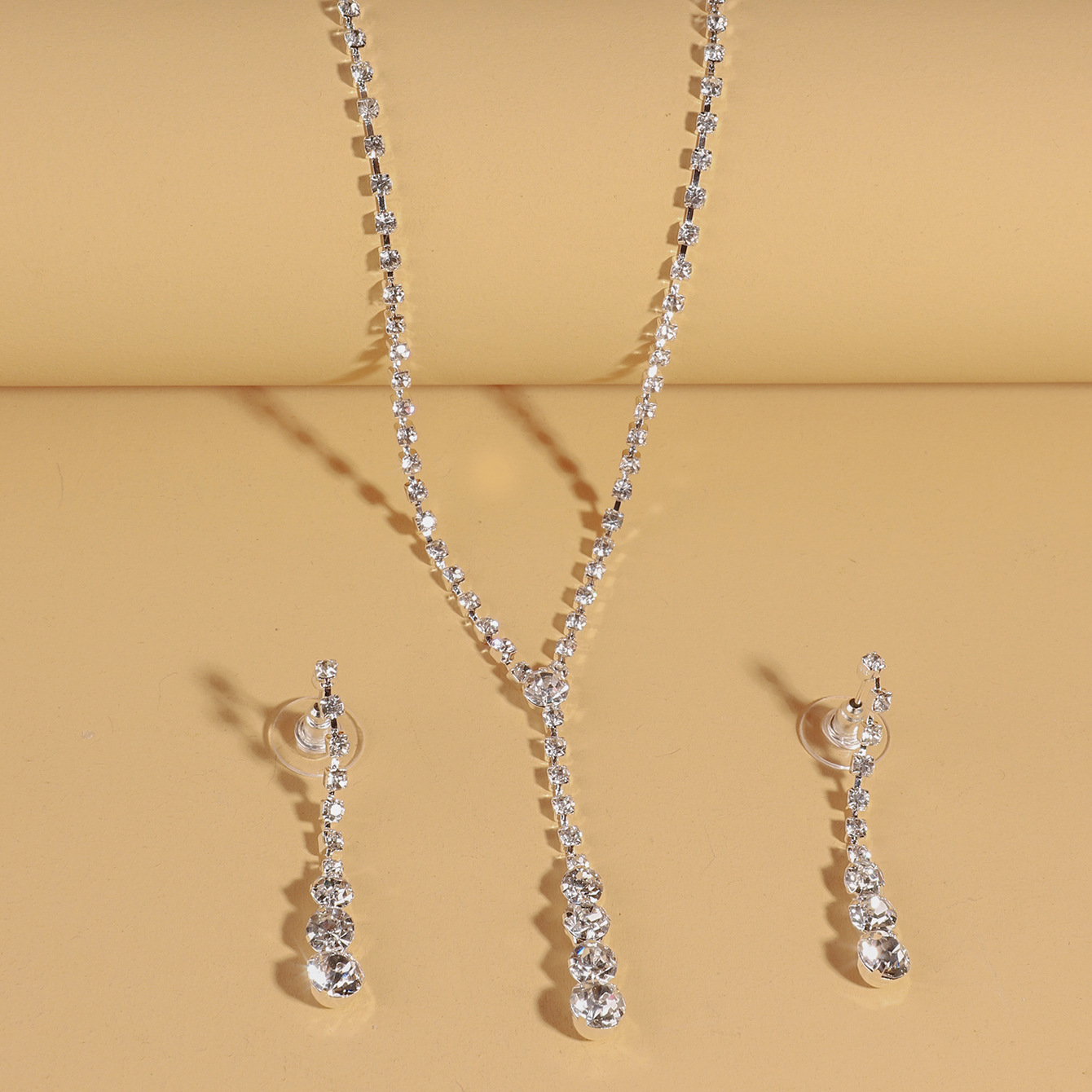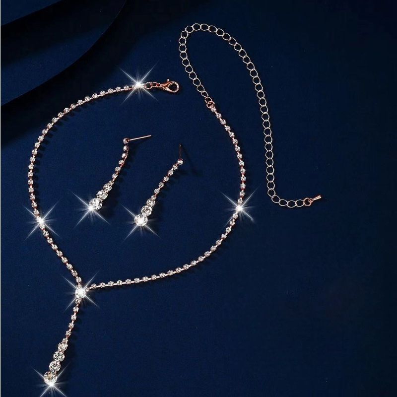 Joyería de la boda europea y americana nupcial gota de agua rhinestone collar oído pin traje de dos piezas conjunto femenino joyería nupcial