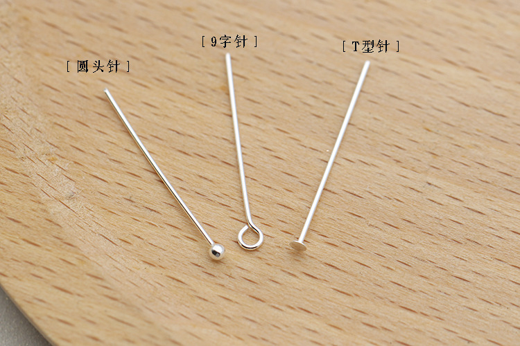S925 plata de ley 0.6mmT aguja de 9 caracteres aguja redonda accesorios de bricolaje aguja de plata pendientes pulsera con cuentas