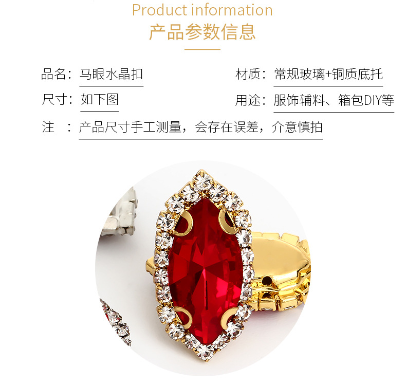 Ojo de caballo, borde, garras, taladro perforado, taladro cosido a mano, soporte inferior grueso, tocado, equipaje, accesorios de ropa, hebilla de cristal de ojo de caballo