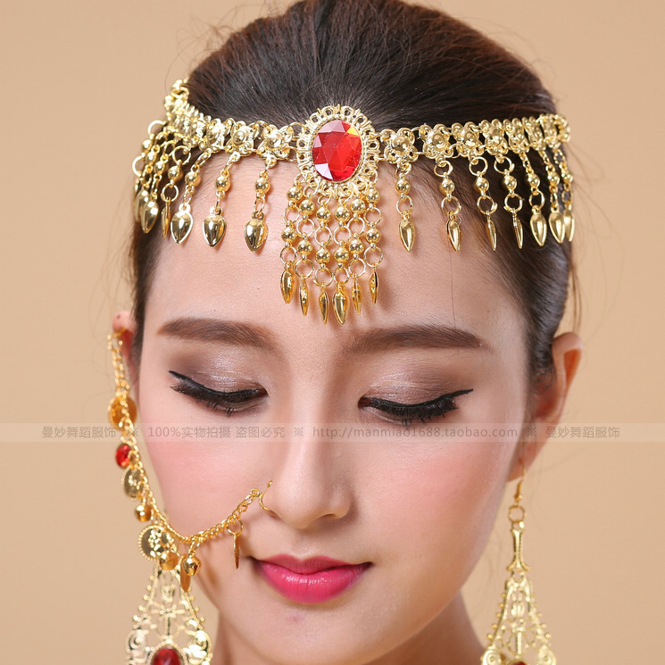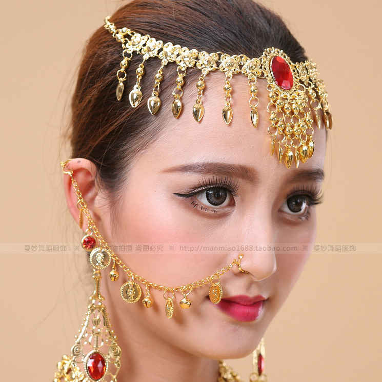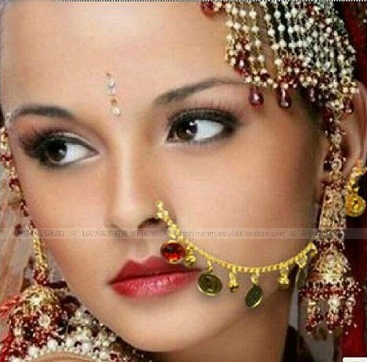 Accesorios de Danza al por Mayor, Accesorios de Danza India, Clip Nasal para Danza del Vientre, Anillo Nasal, Cadena Nasal Étnica con Piedras Preciosas, Tocado