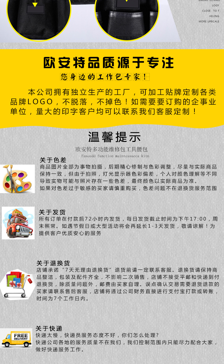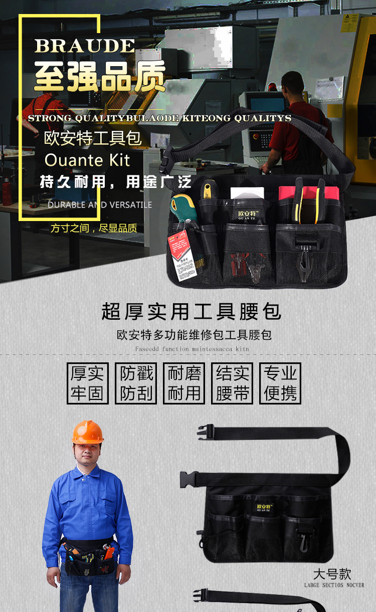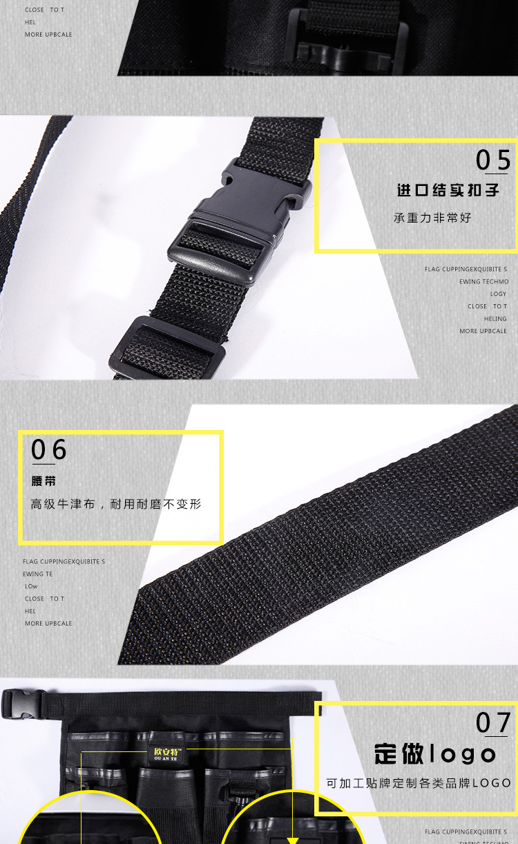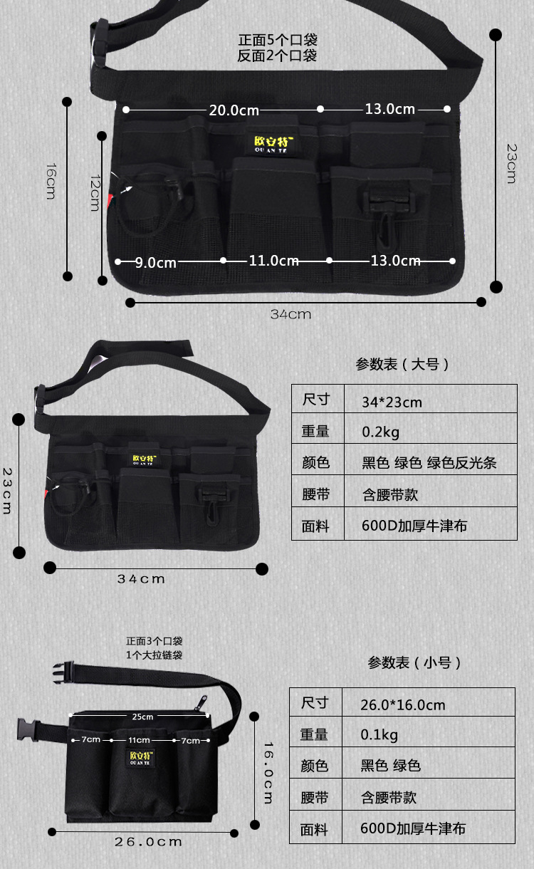 | Uso principal | Riñonera de electricista,Riñonera de carpintería,Riñonera de herramienta integral,Riñonera de seguridad |