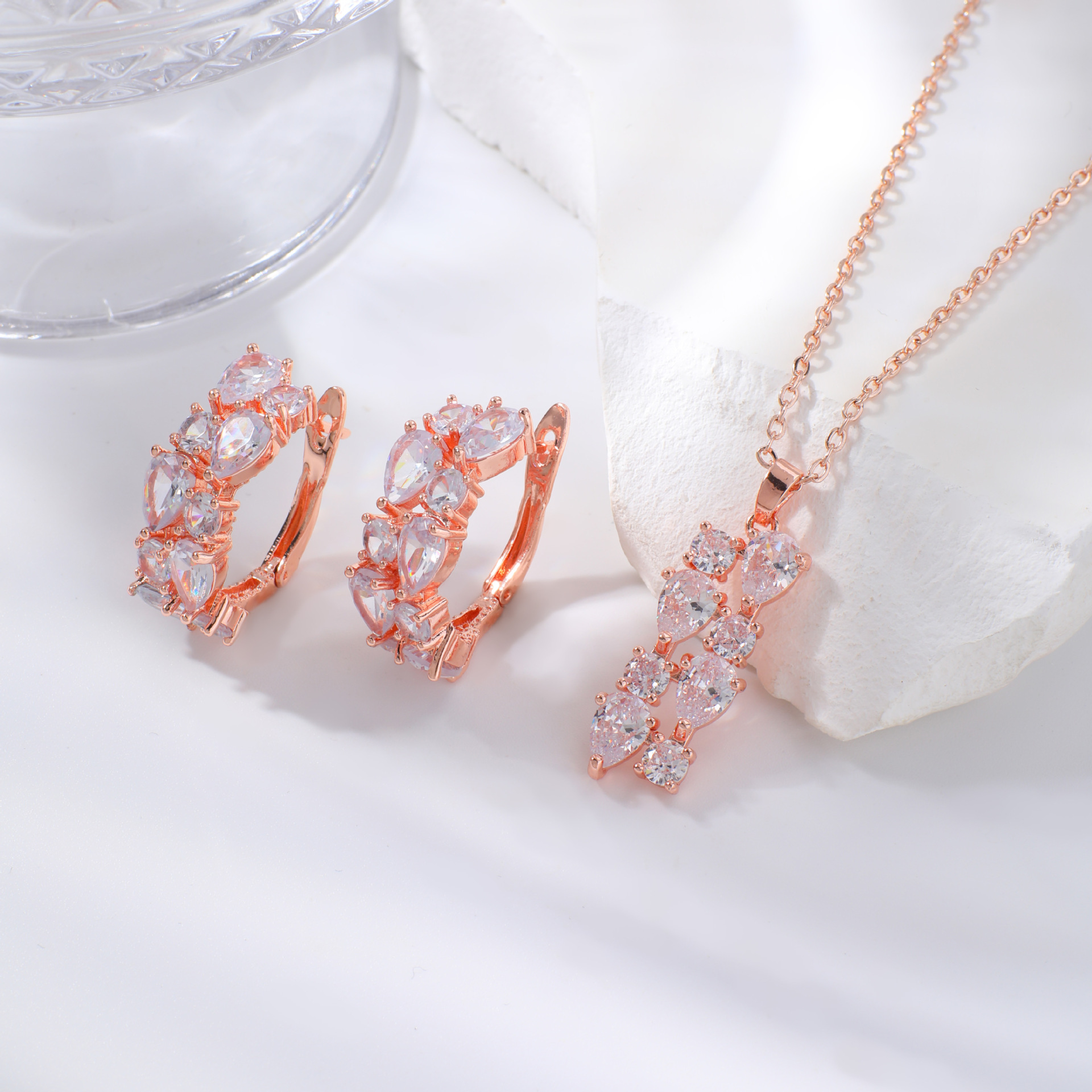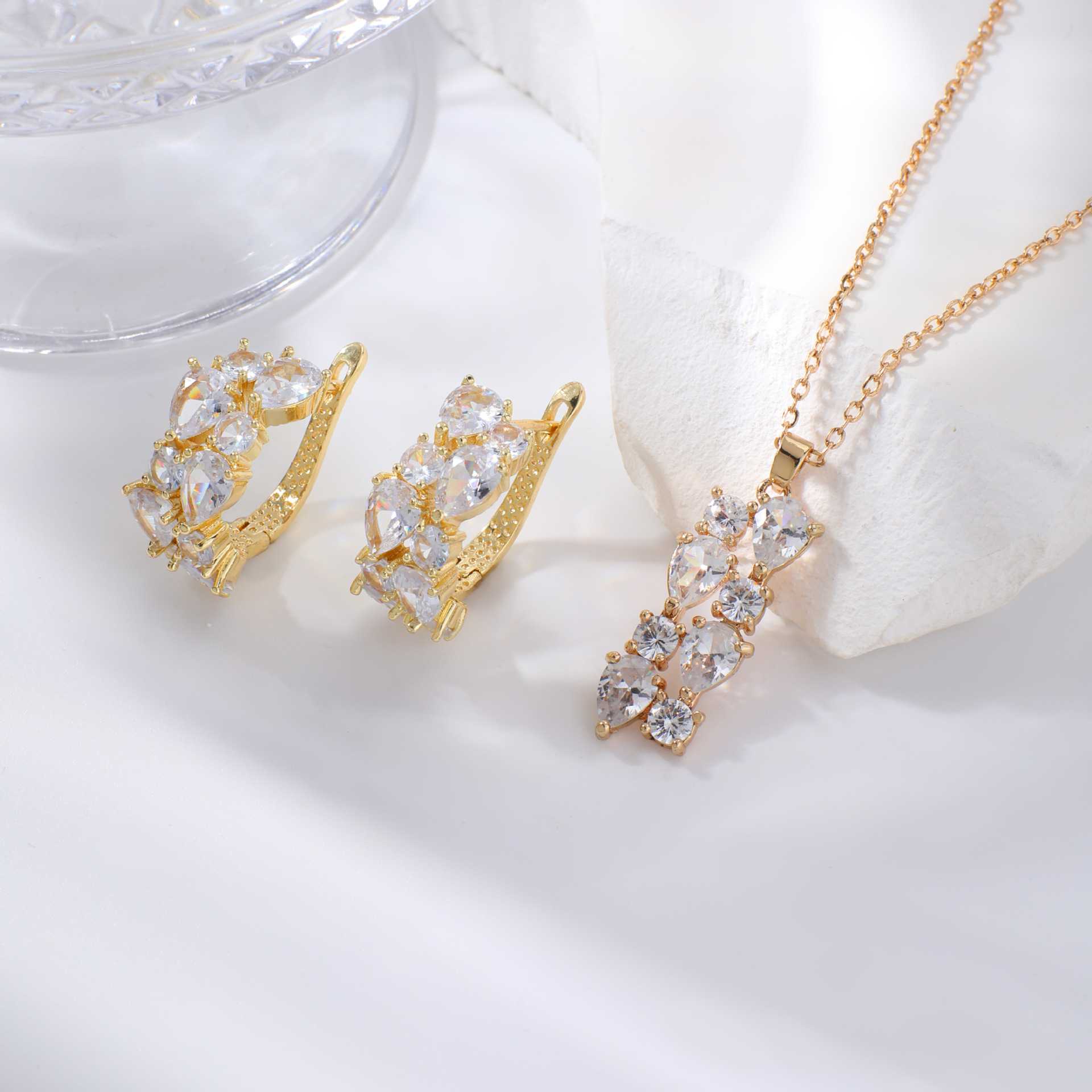 Kashi joyería traje Mona Lisa circón collar pendientes colorido collar pendientes conjunto de dos piezas al por mayor femenina