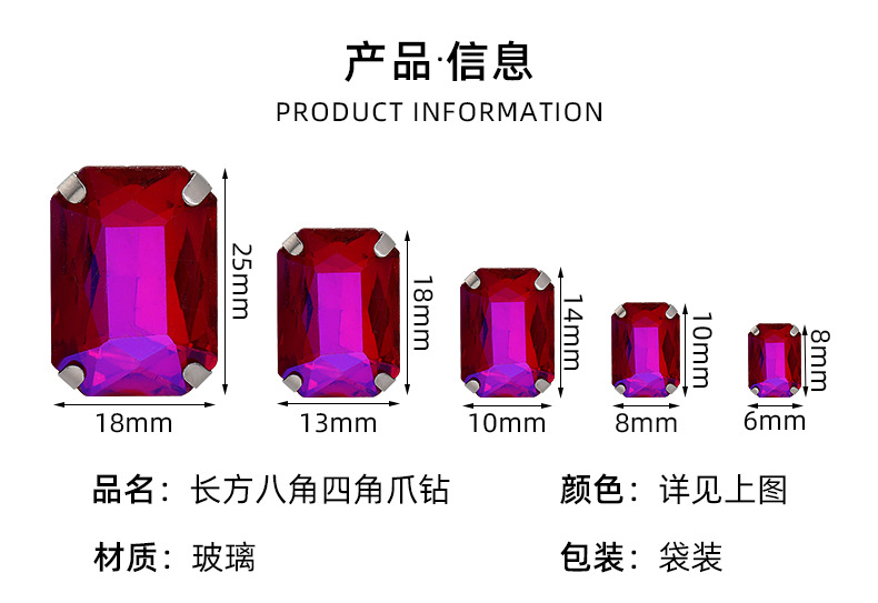 Taladro de garra octogonal rectangular taladro perforado cosido a mano soporte inferior grueso equipaje vestido de novia accesorios accesorios taladro de garra rectangular