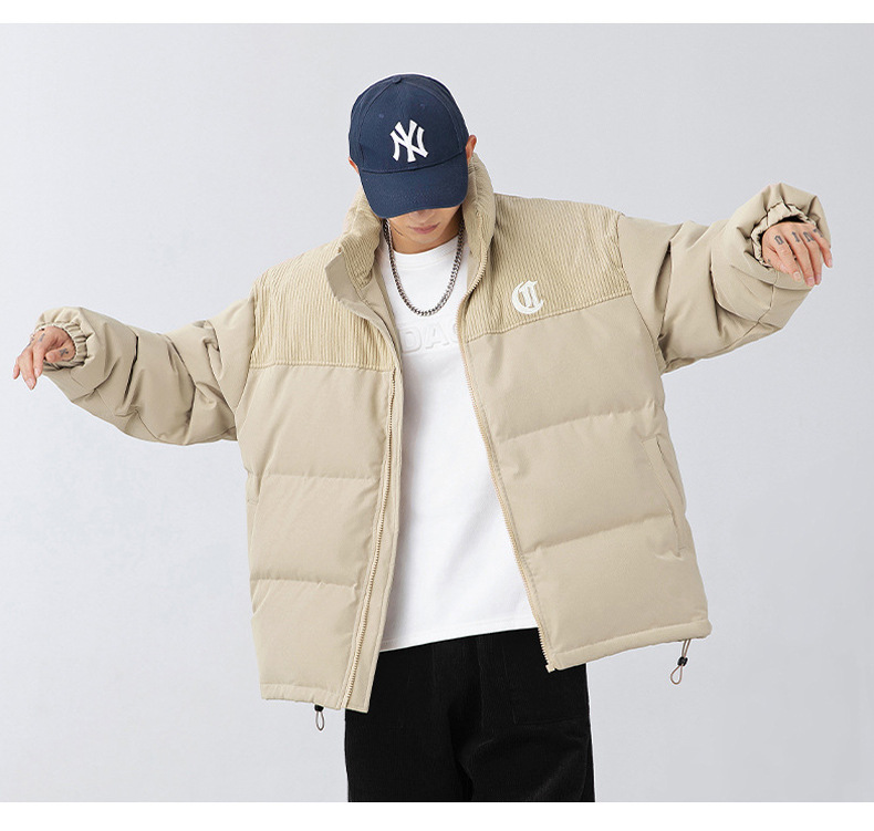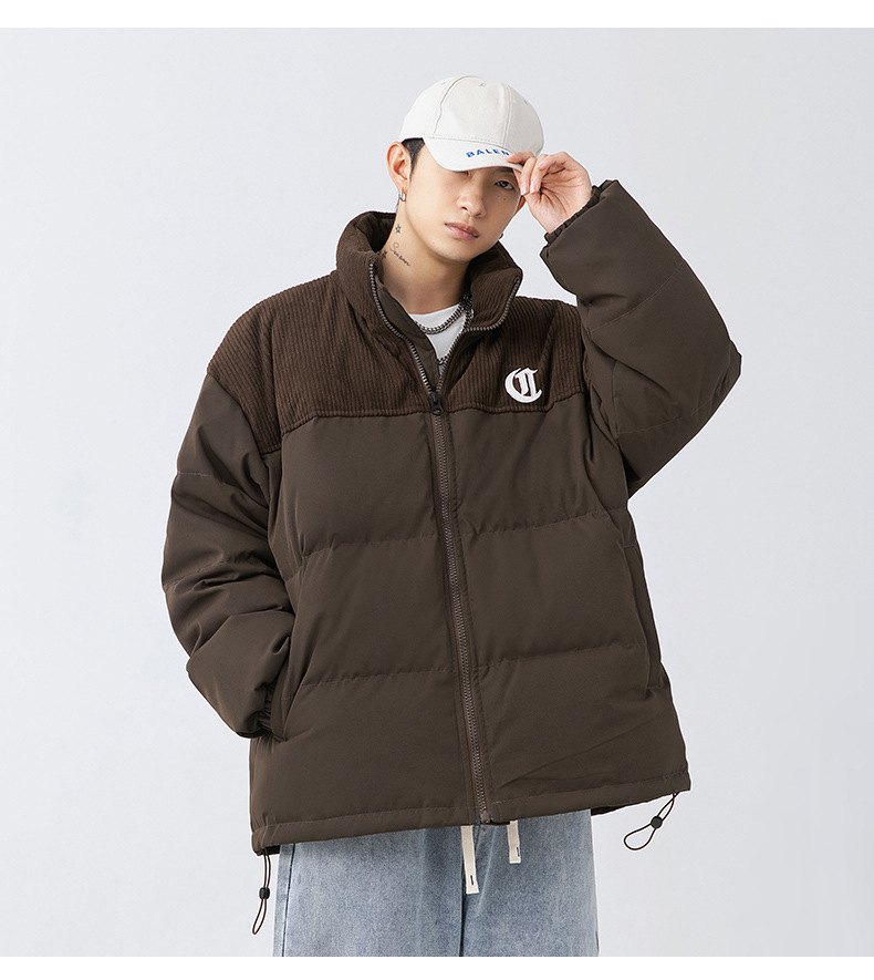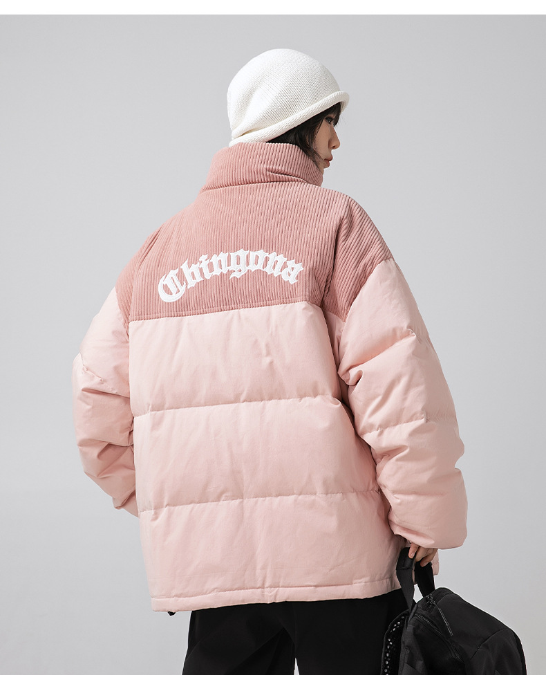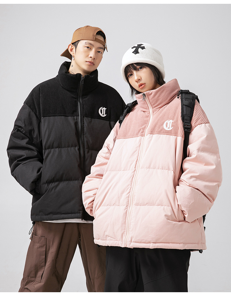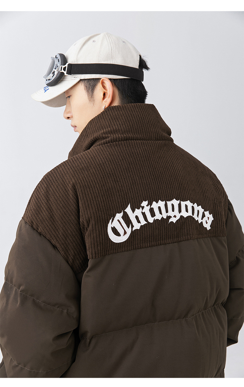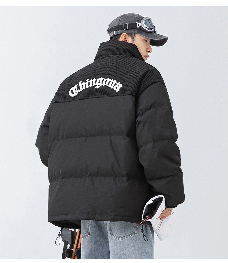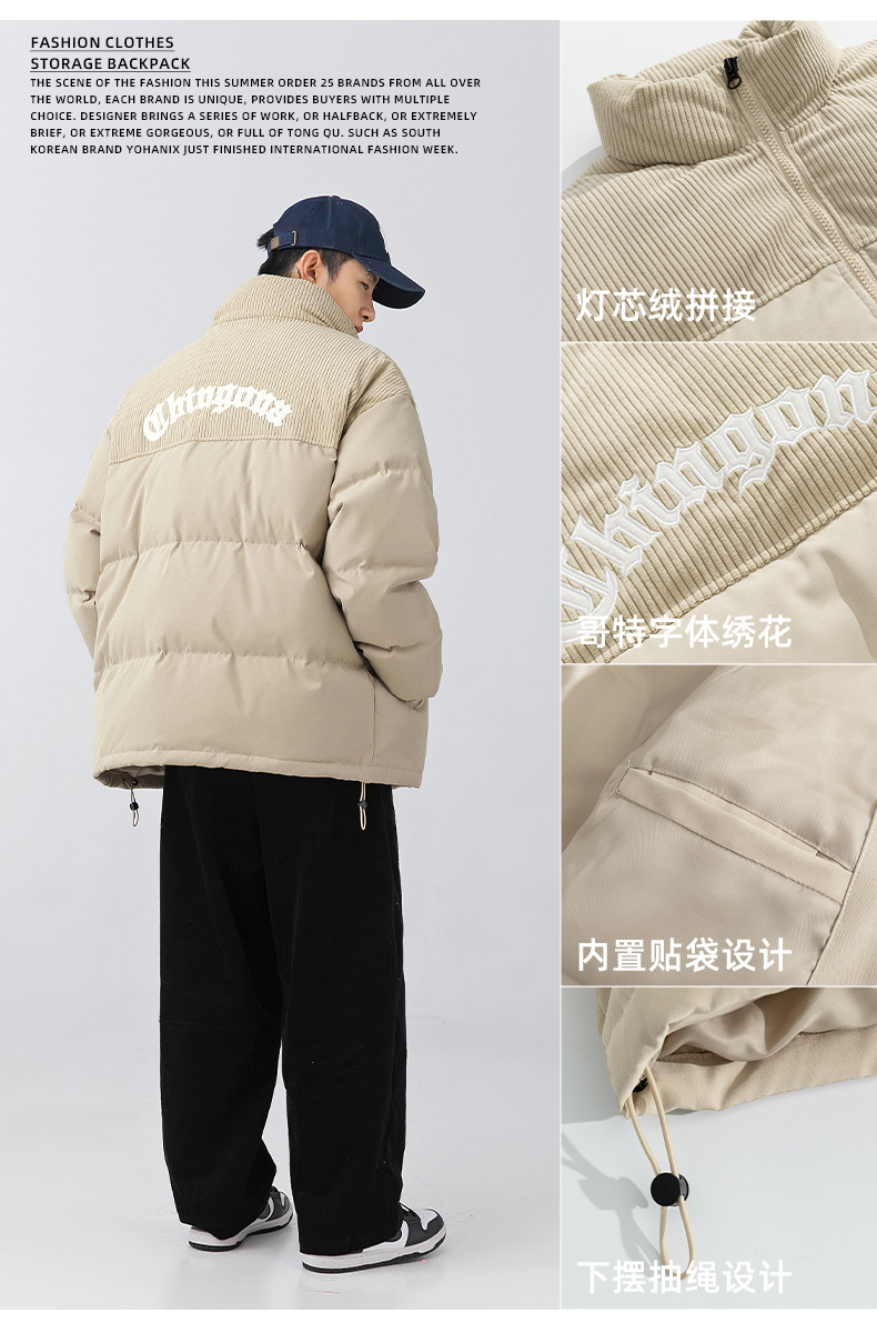 Chaqueta de algodón gruesa de invierno para parejas, nuevo estilo de invierno con bordado de letras, marca de moda, abrigo de algodón con parches de pana holgada.