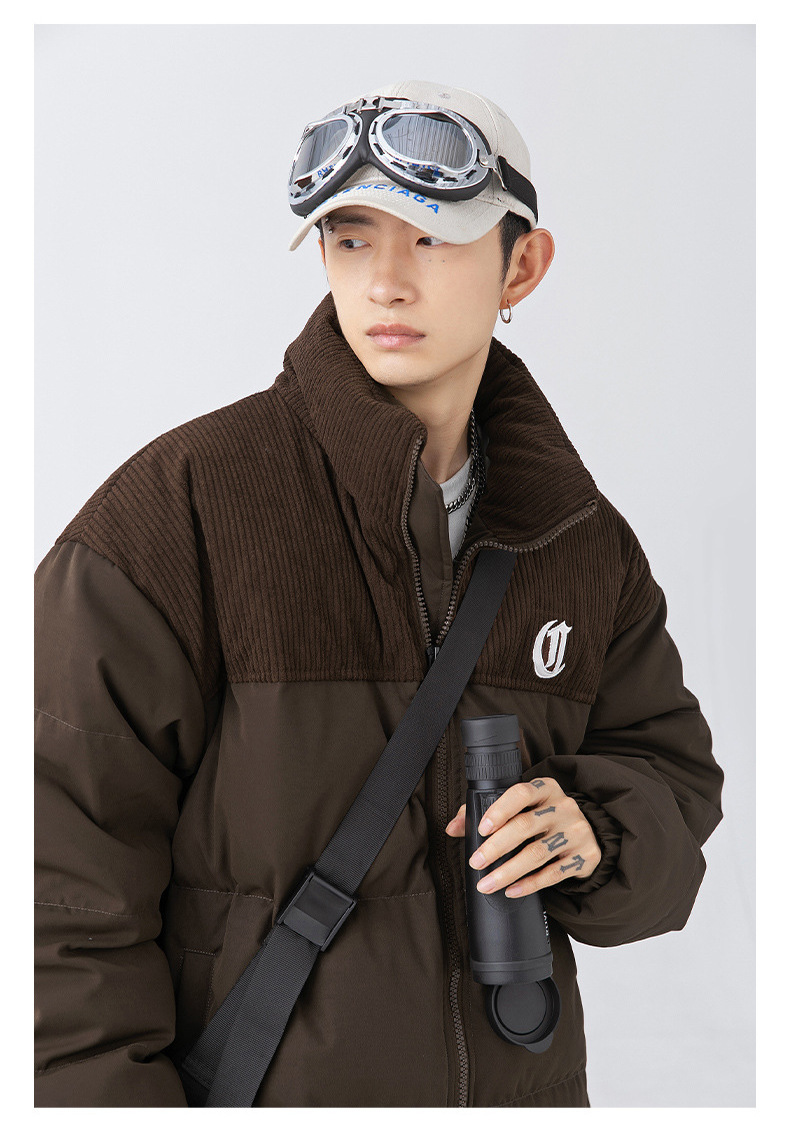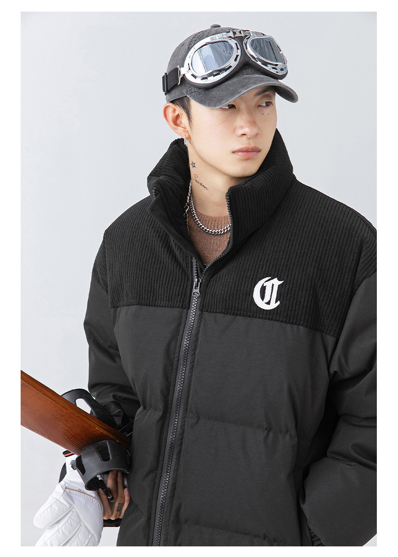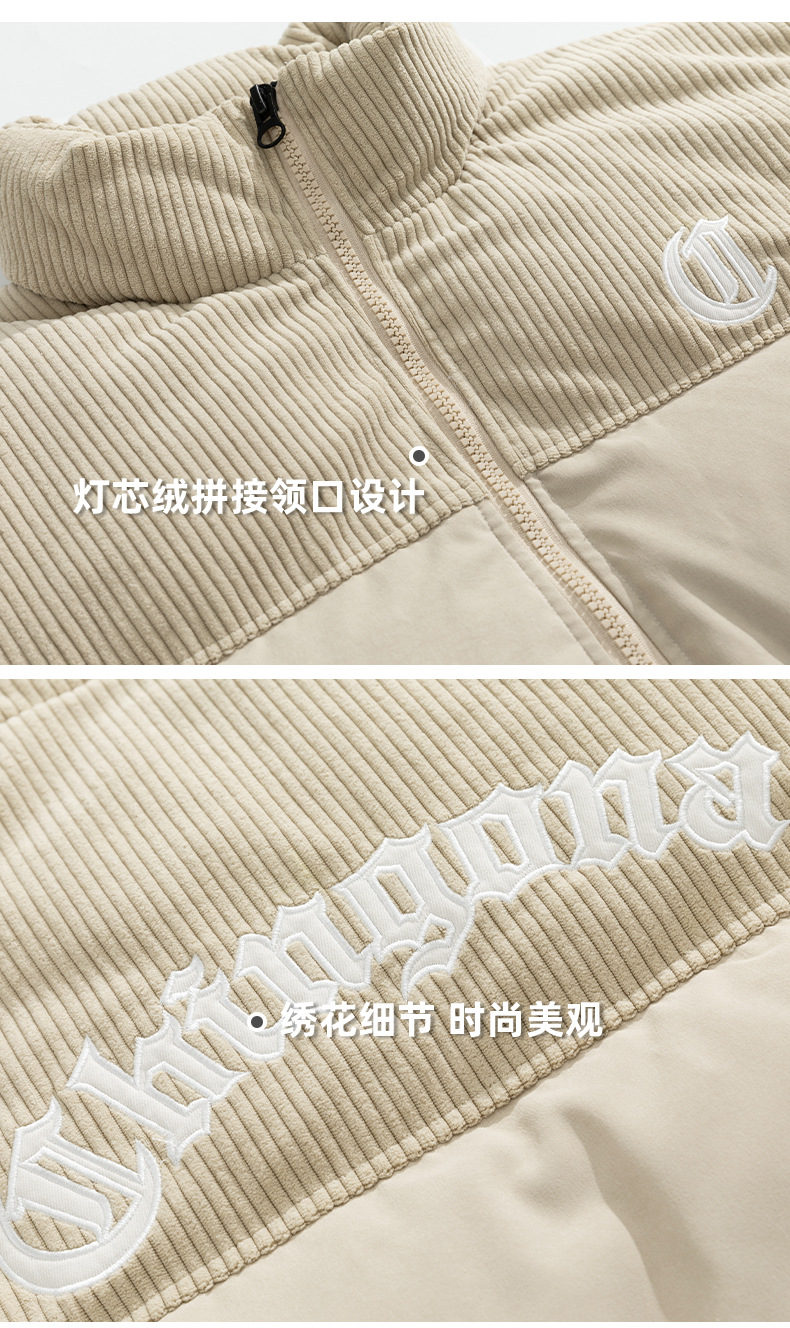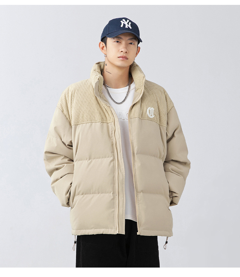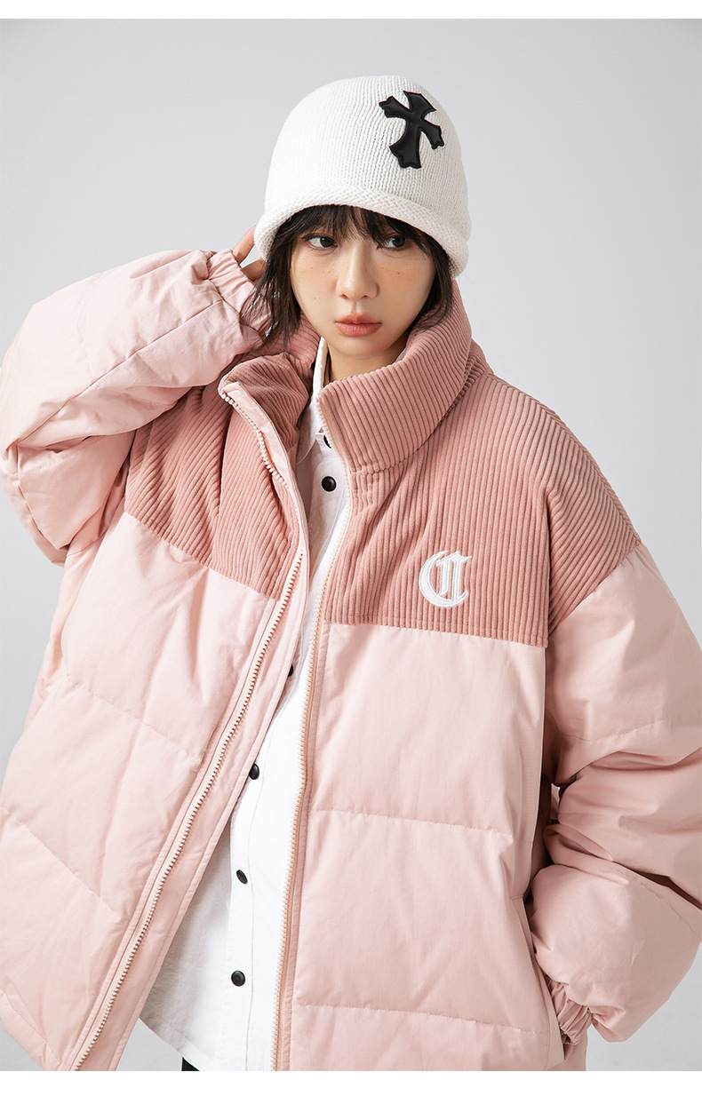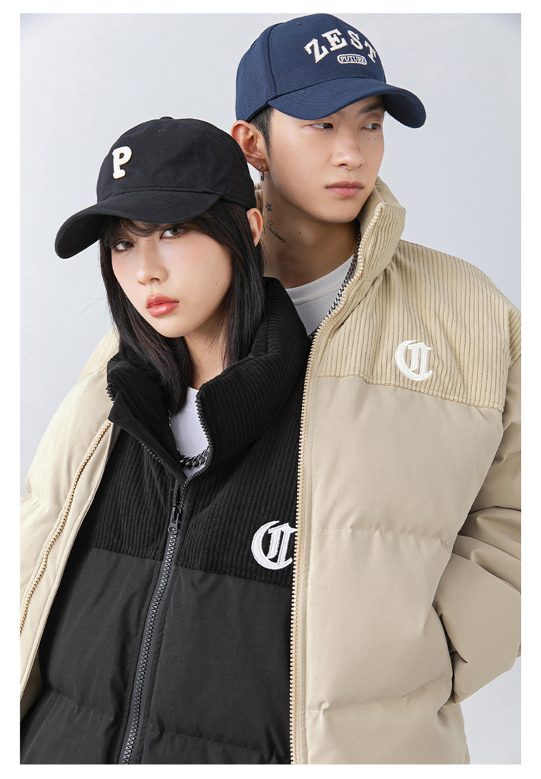 Chaqueta de algodón gruesa de invierno para parejas, nuevo estilo de invierno con bordado de letras, marca de moda, abrigo de algodón con parches de pana holgada.