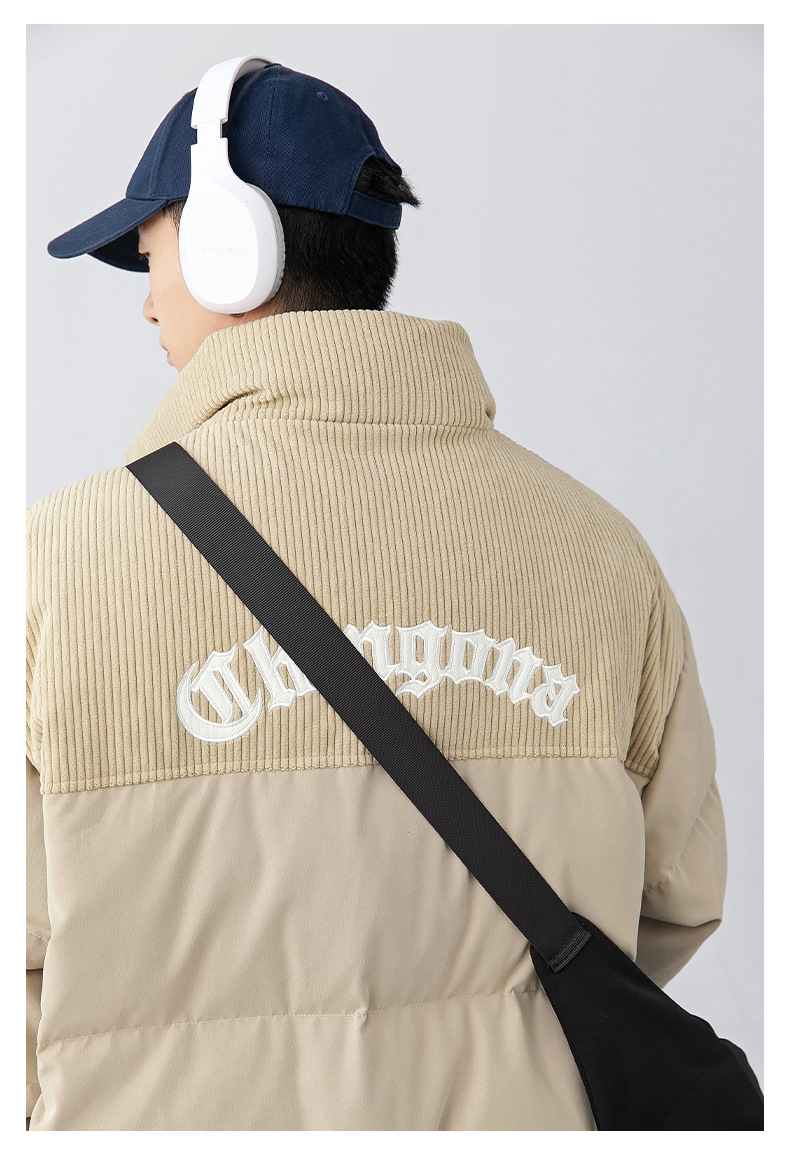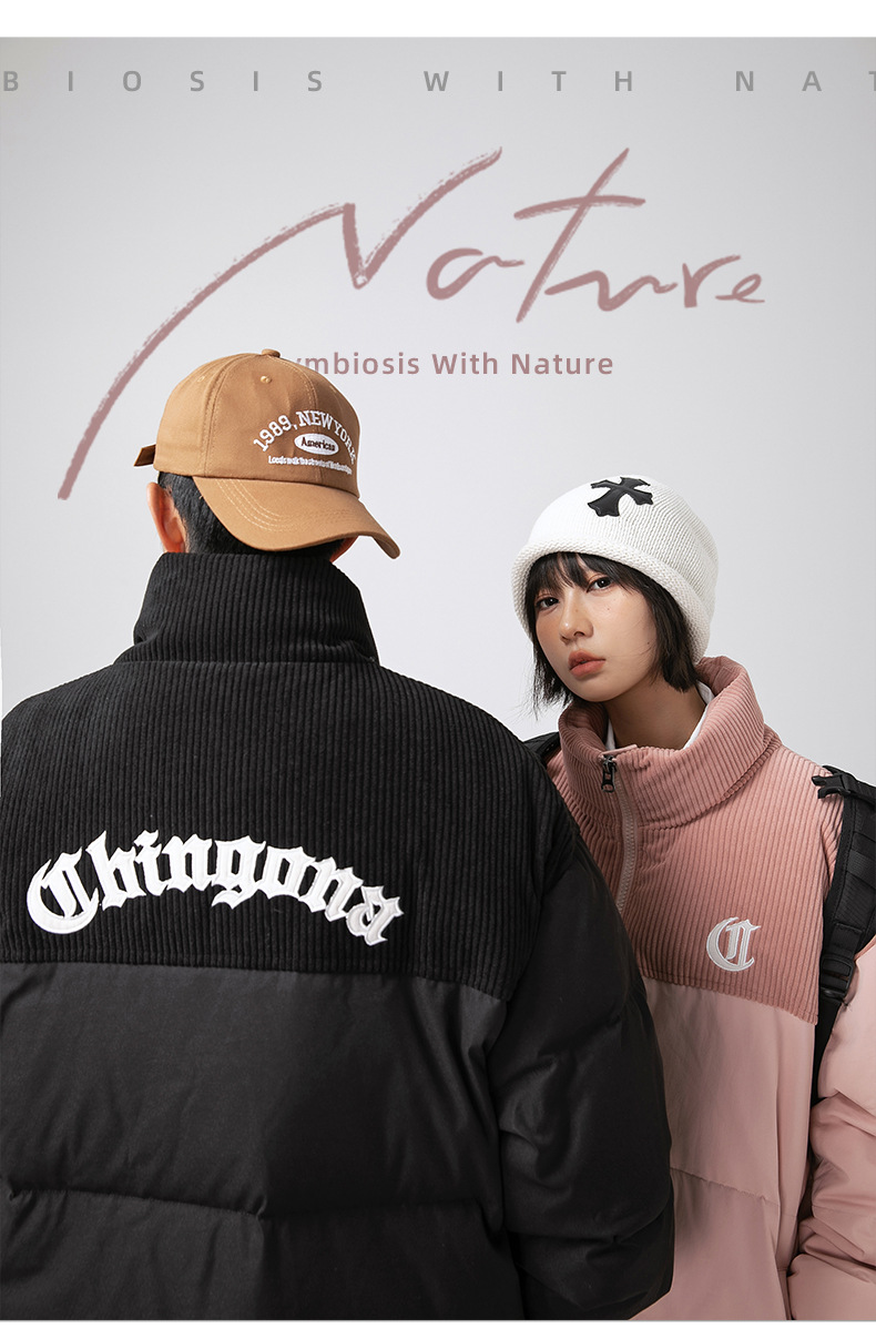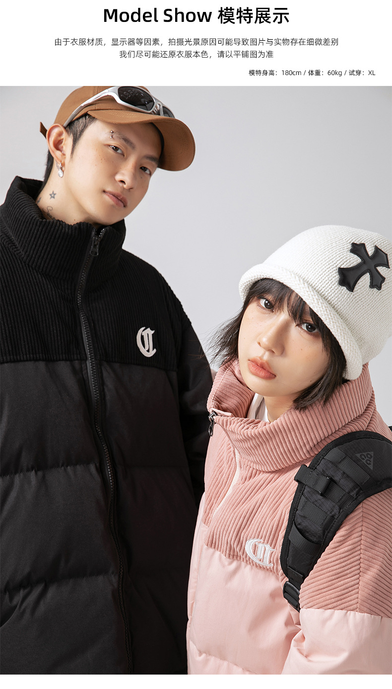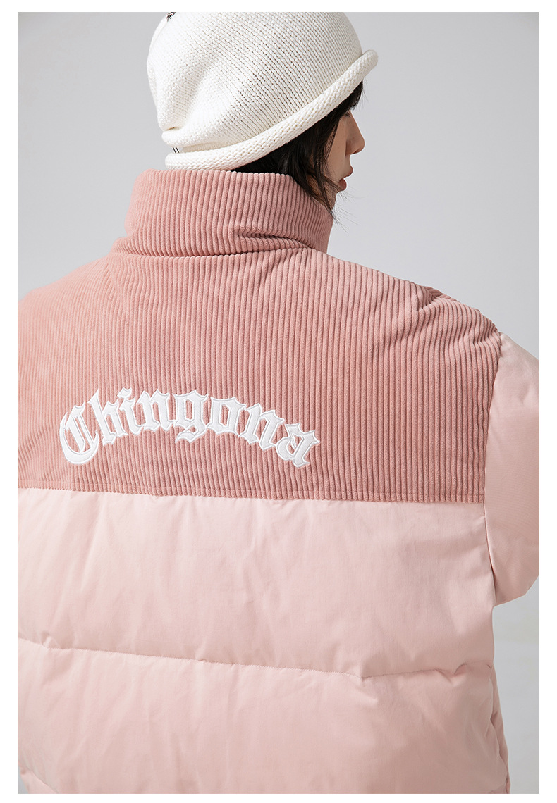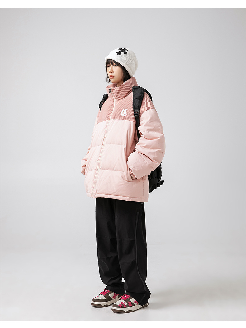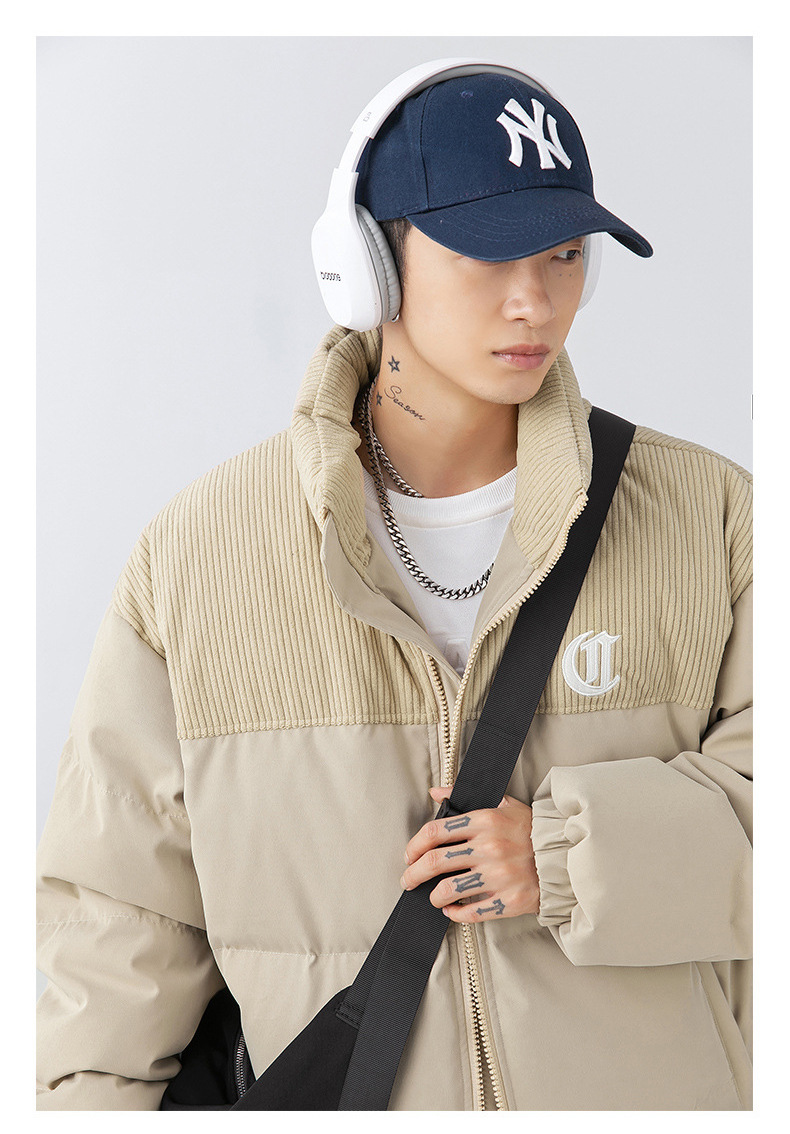 Chaqueta de algodón gruesa de invierno para parejas, nuevo estilo de invierno con bordado de letras, marca de moda, abrigo de algodón con parches de pana holgada.
