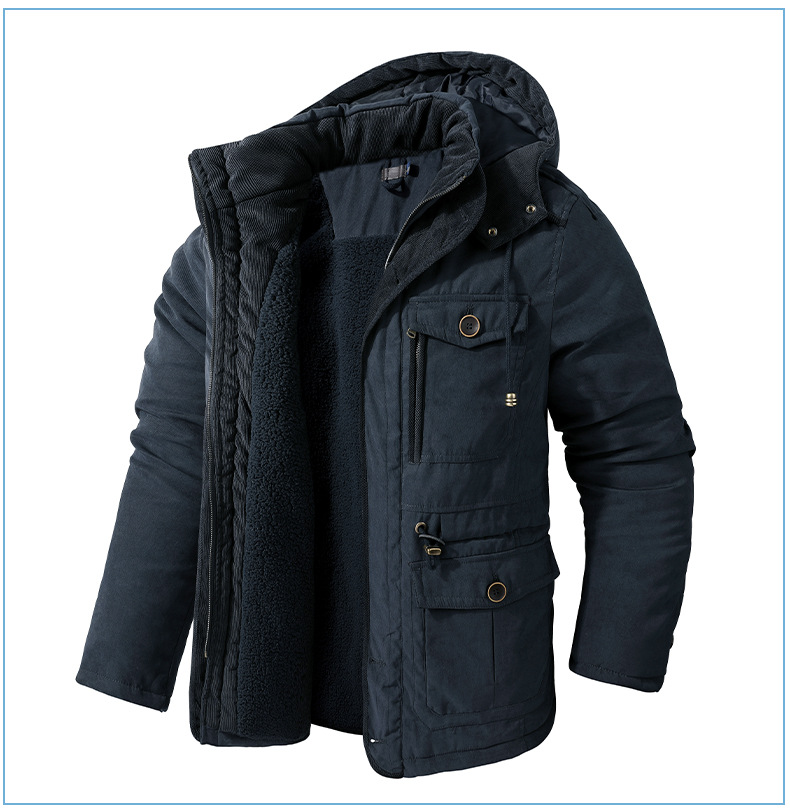 Ropa transfronteriza de tamaño estadounidense para hombres más tamaño de longitud media forrada de lana engrosada ropa acolchada de algodón al aire libre menos protección de temperatura ropa acolchada de algodón cálido