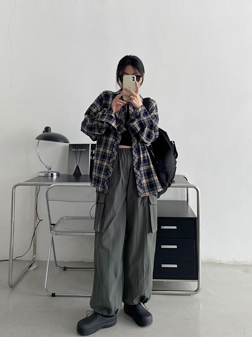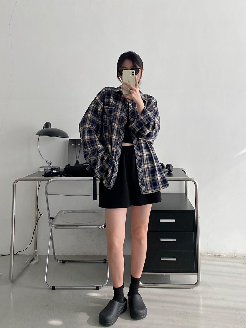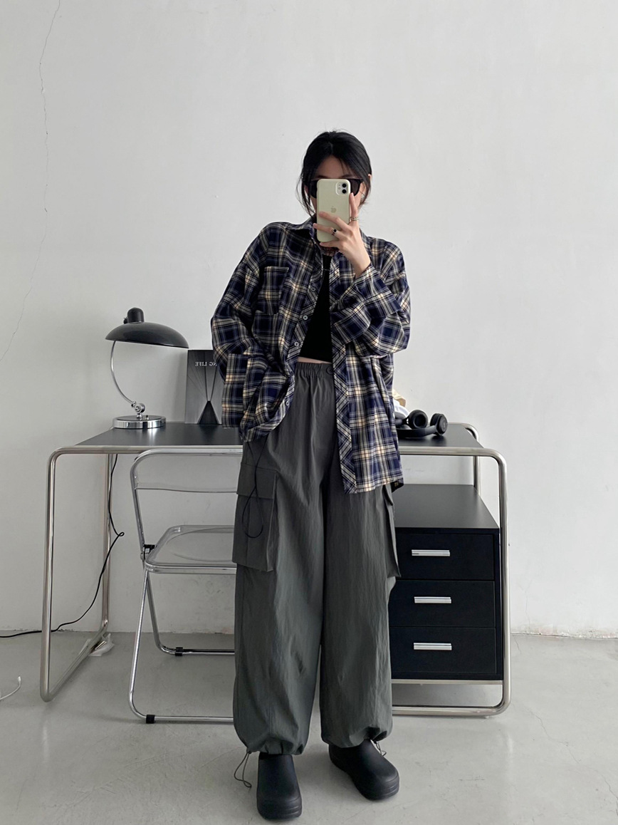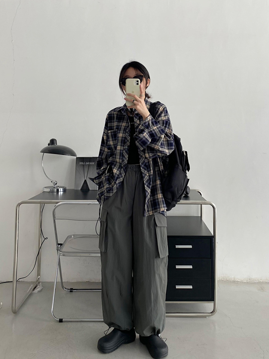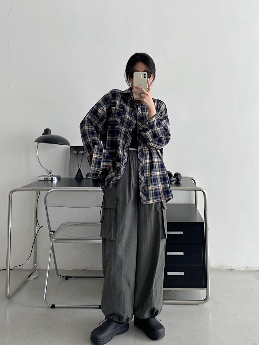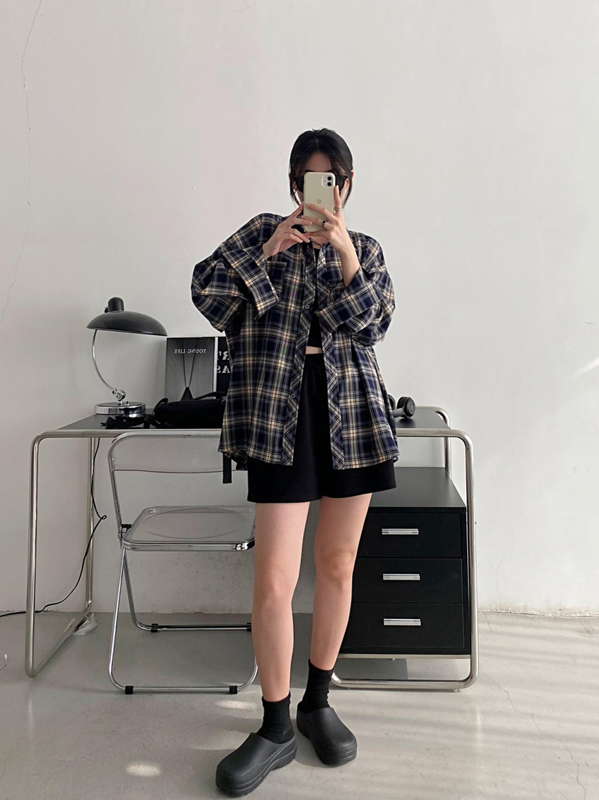 Camisa a cuadros retro americana para hombres y mujeres abrigo primavera y otoño cardigan diseño suelto camisa exterior de manga larga superior