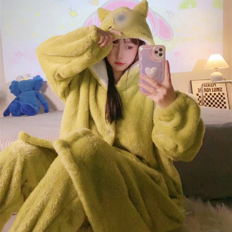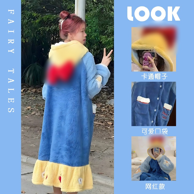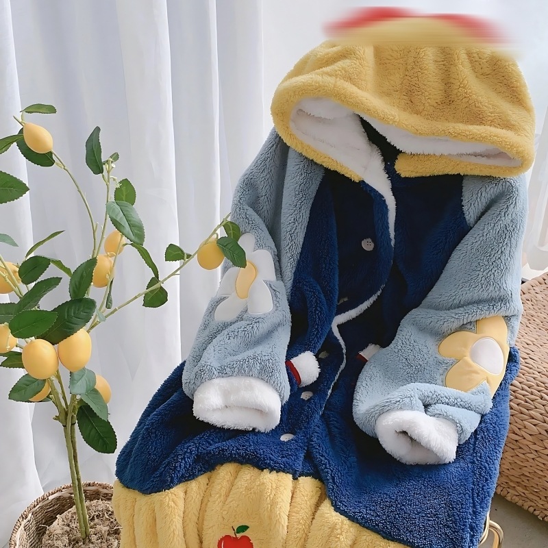 Púrpura Daisy camisón de las mujeres del otoño y el invierno Pijamas largos de lana de coral engrosada Albornoz ropa para el hogar forro polar engrosada franela