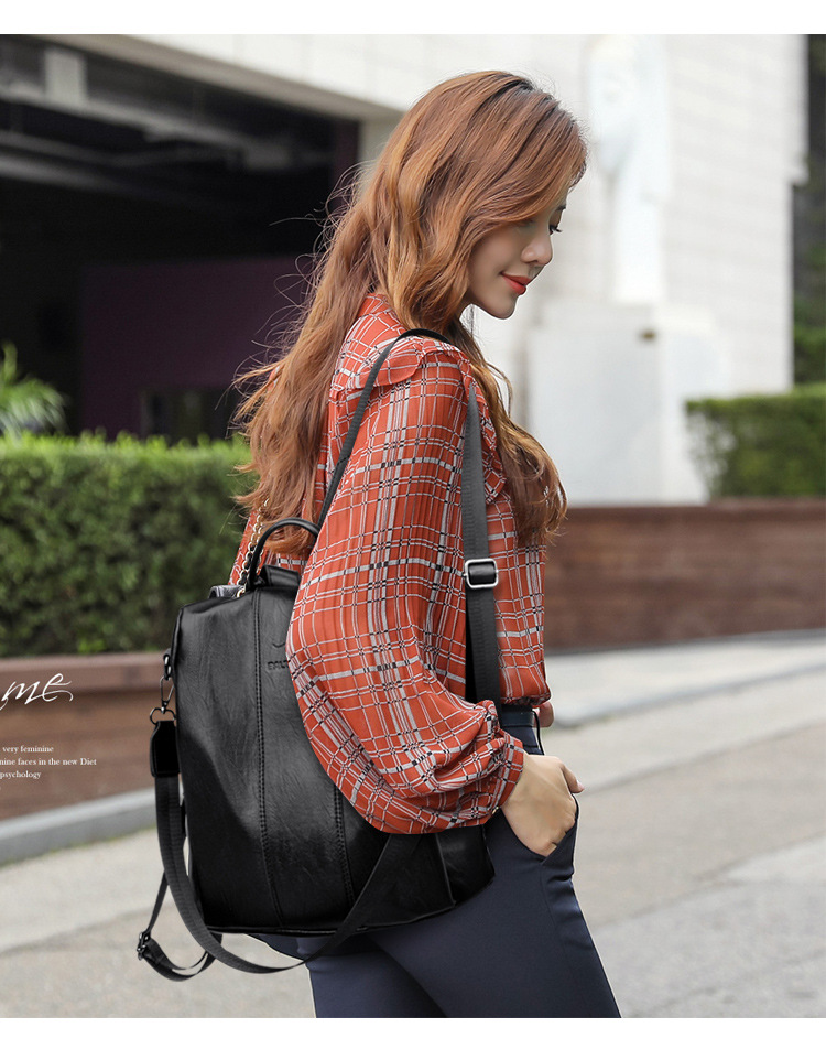Mochila escolar de cuero suave estilo coreano, bolso antirrobo para mujer, diseño moderno