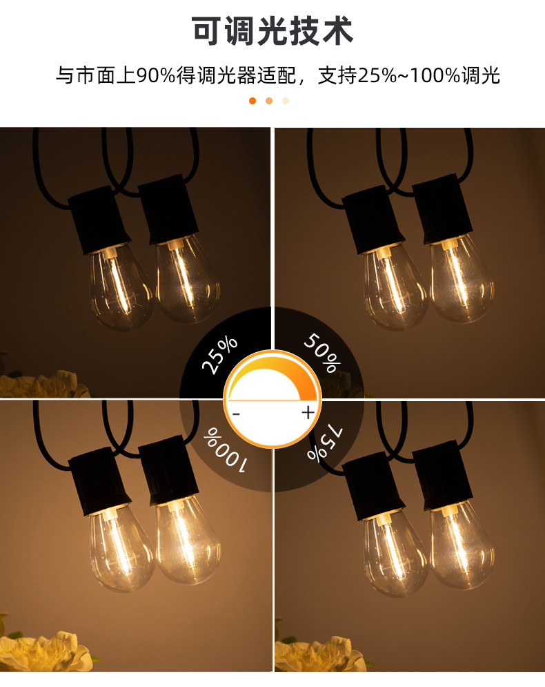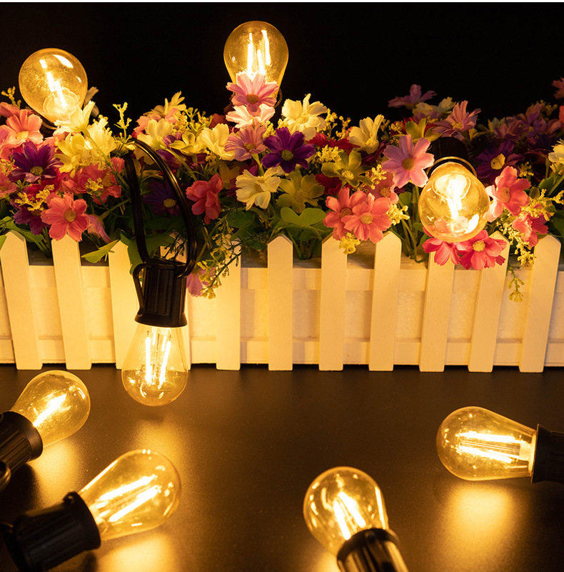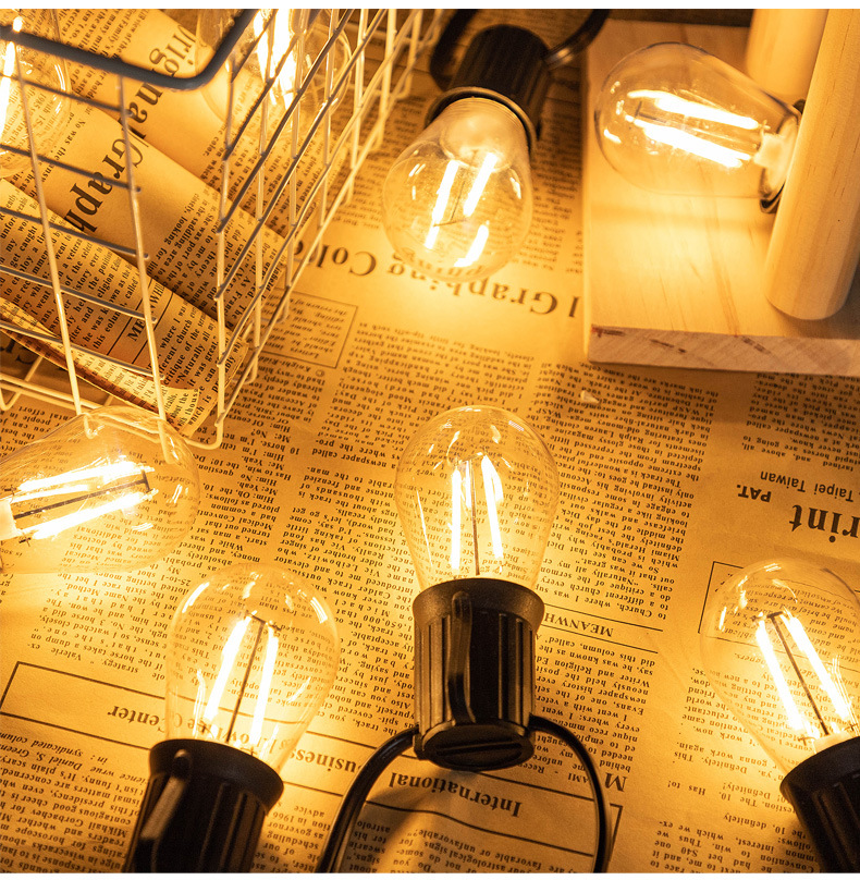 Lámpara led de plástico S14 Lámpara de filamento Edison 2700K Cálido E27 Impermeable y de ahorro de energía ST45 Lámpara de cadena de espuma