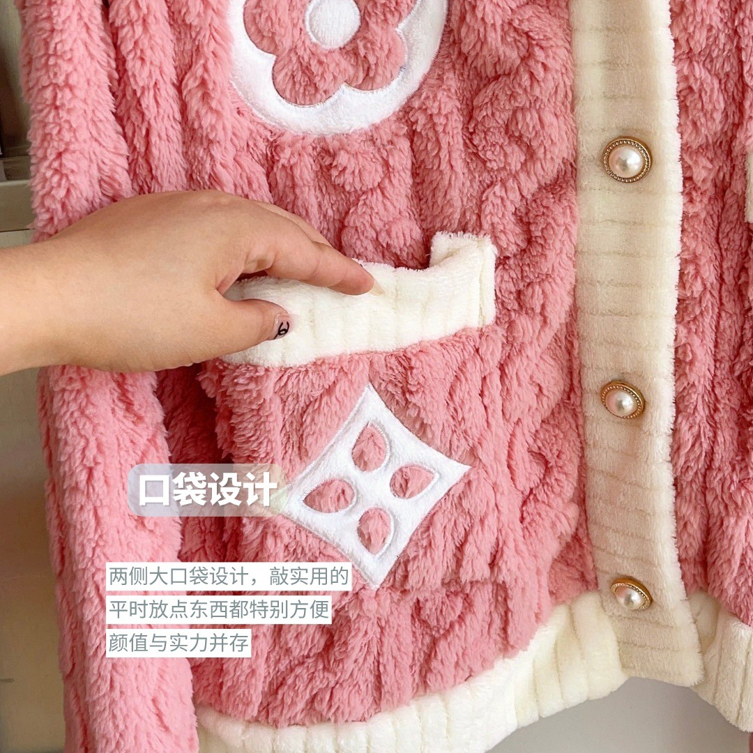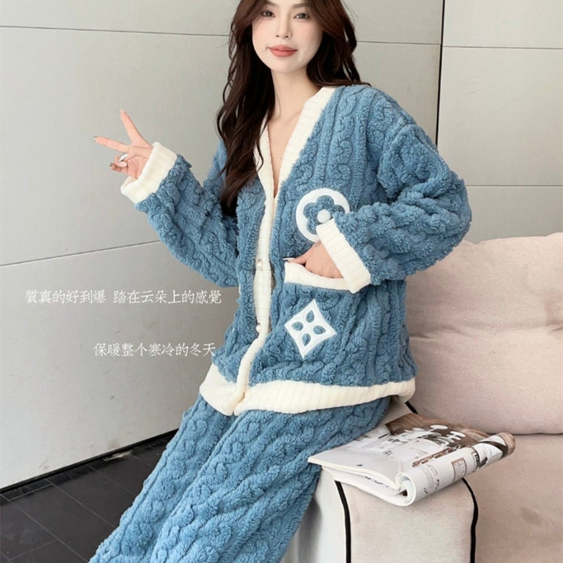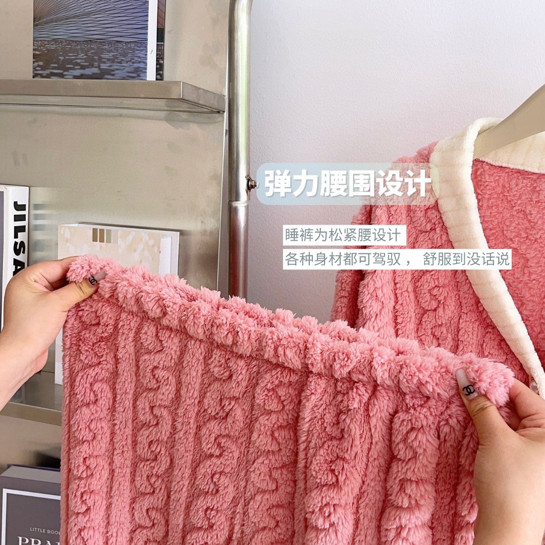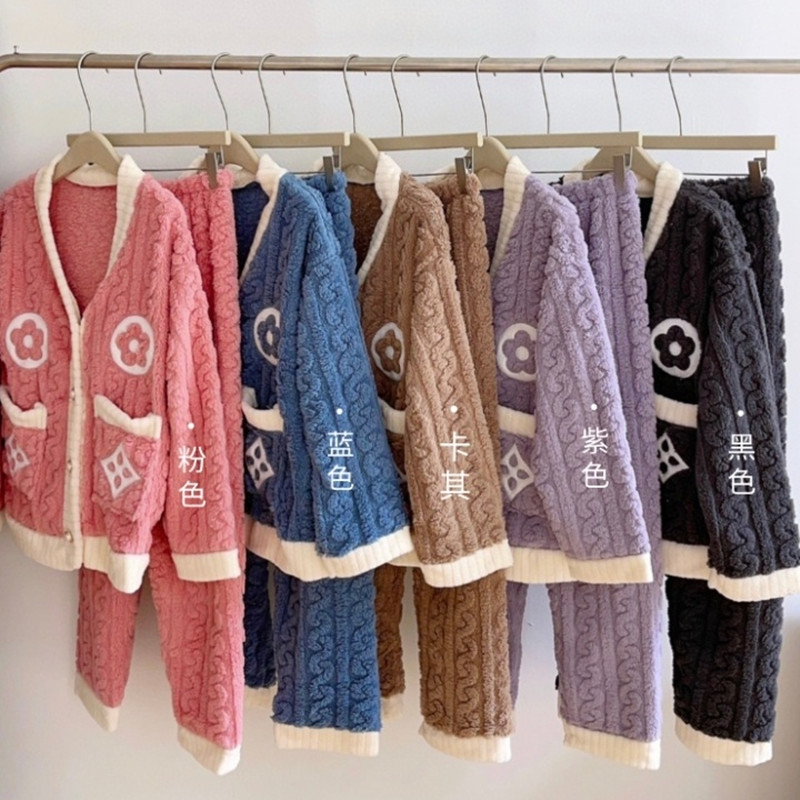 Otoño y invierno nuevo algodón de peluche pequeño cardián cálido y cálido conjunto de pijamas para el hogar ropa de mujer gruesa y cálida dos piezas para mujeres