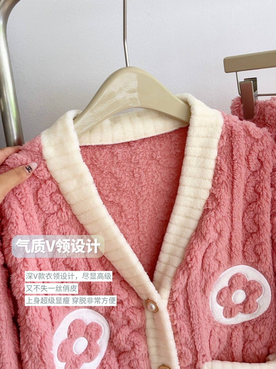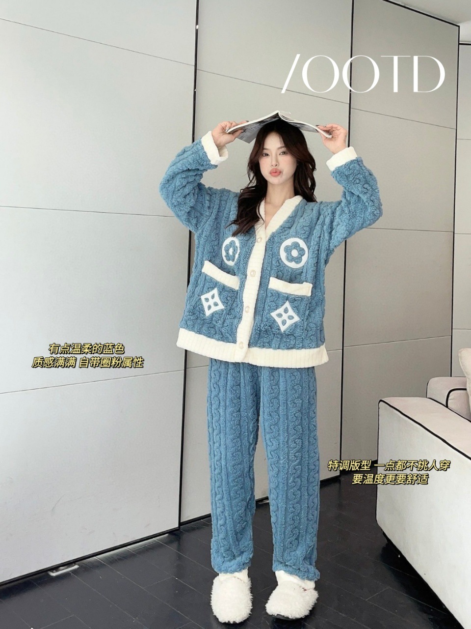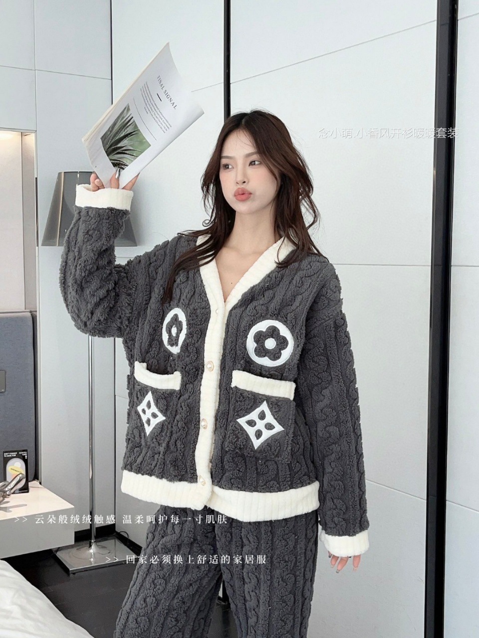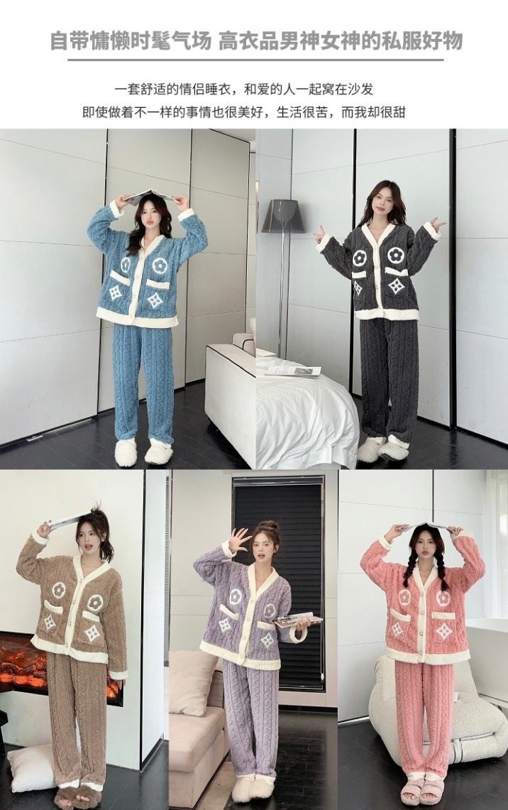 Otoño y invierno nuevo algodón de peluche pequeño cardián cálido y cálido conjunto de pijamas para el hogar ropa de mujer gruesa y cálida dos piezas para mujeres
