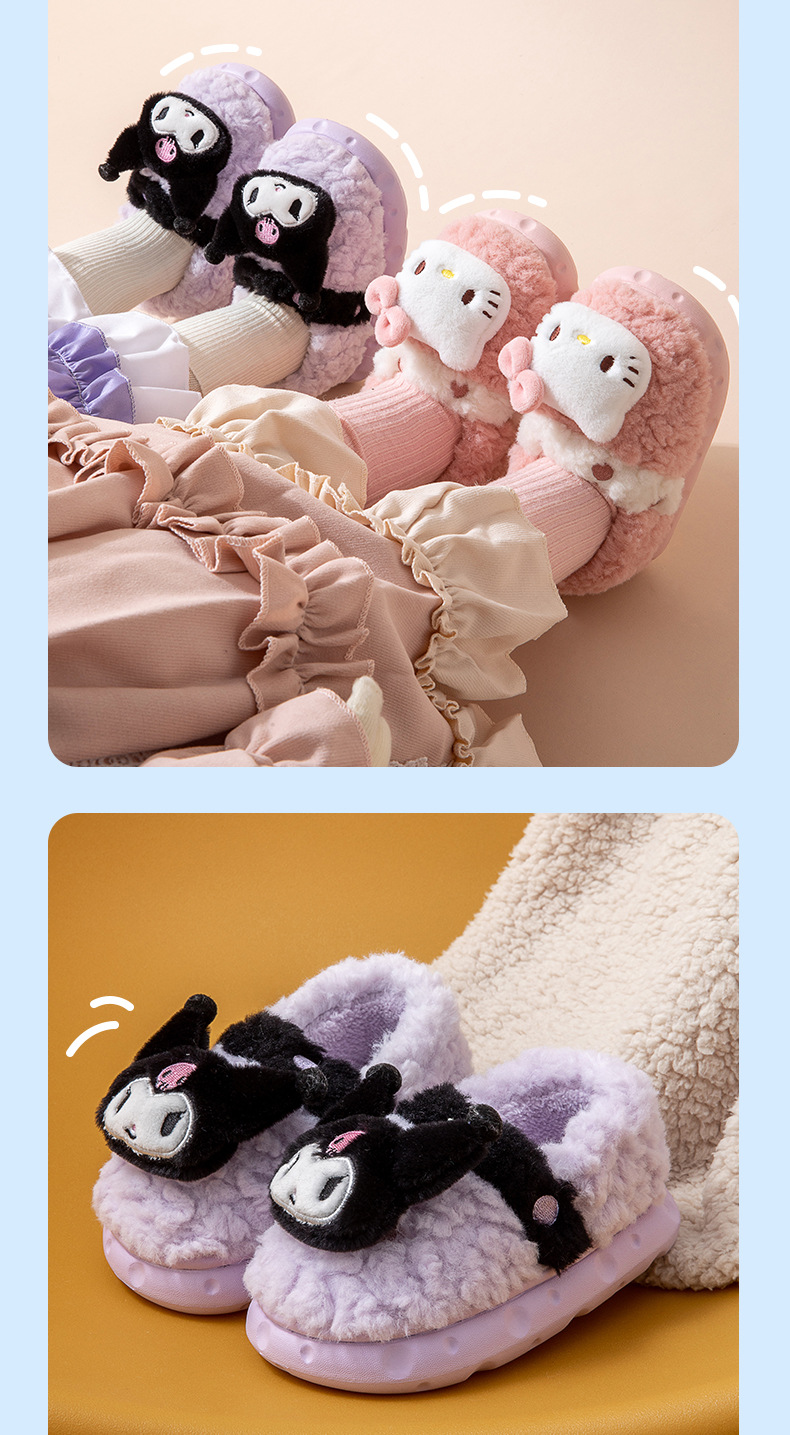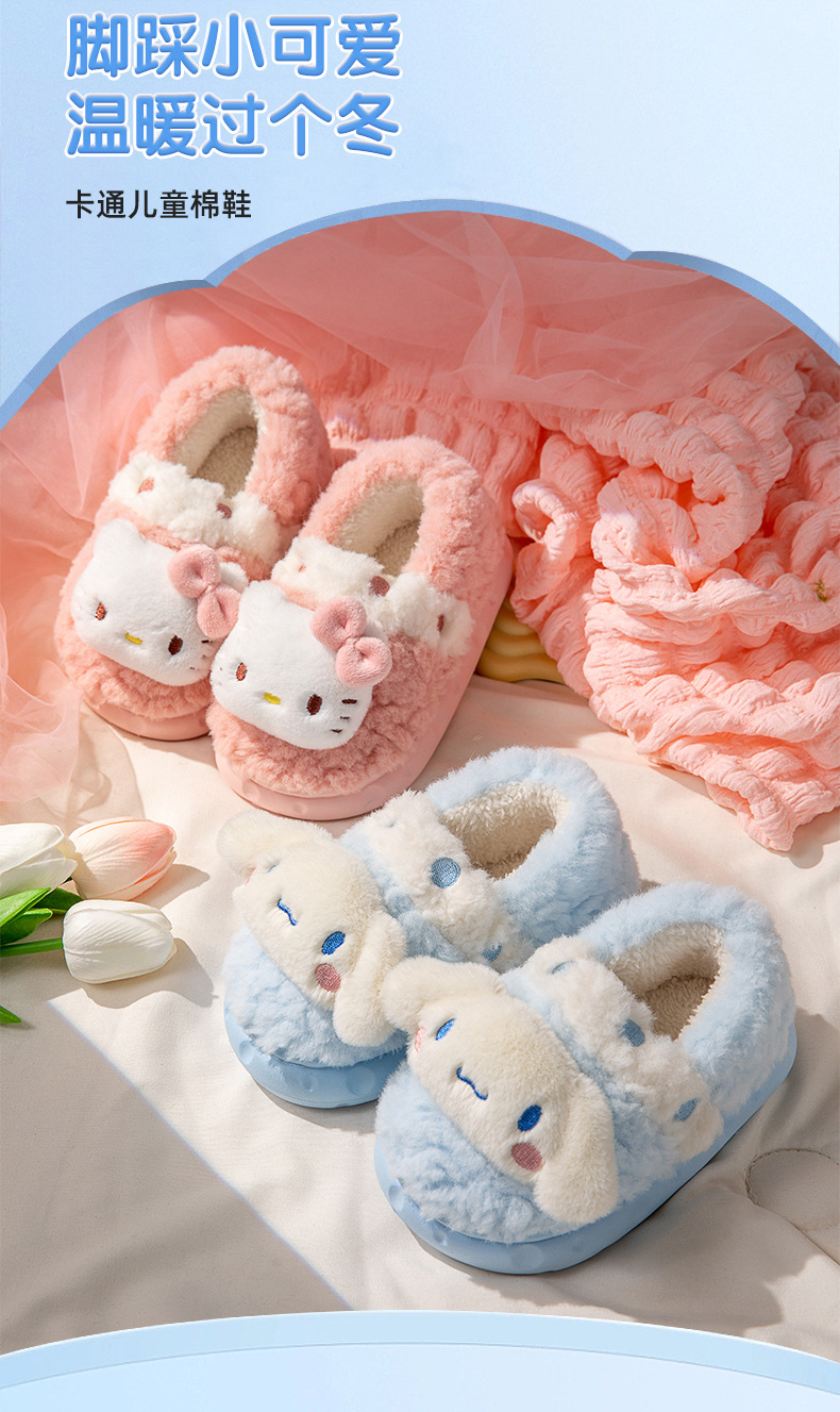 Hello Kitty de los niños zapatillas de algodón de invierno de las niñas lindo genuino interior caliente de la felpa del talón del bolso zapatillas de algodón Sanrio