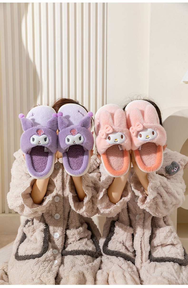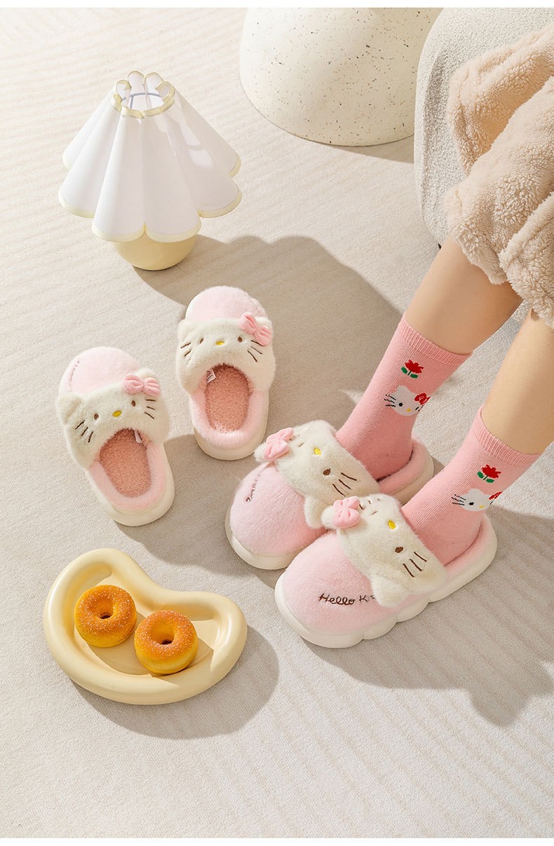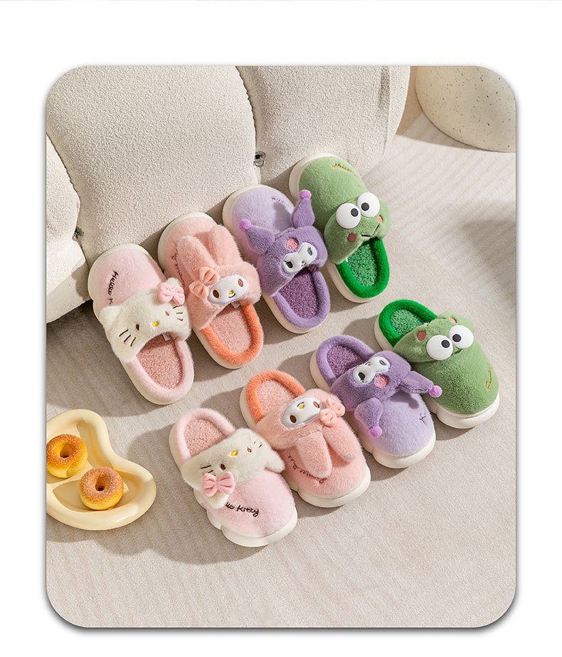 Una pieza de entrega al por mayor Sanrio coolomi ojo grande Rana melodía Hello Kitty Zapatillas de algodón para niños padre-niño invierno