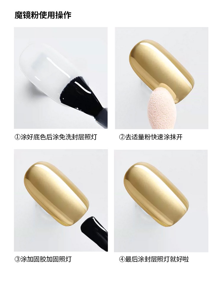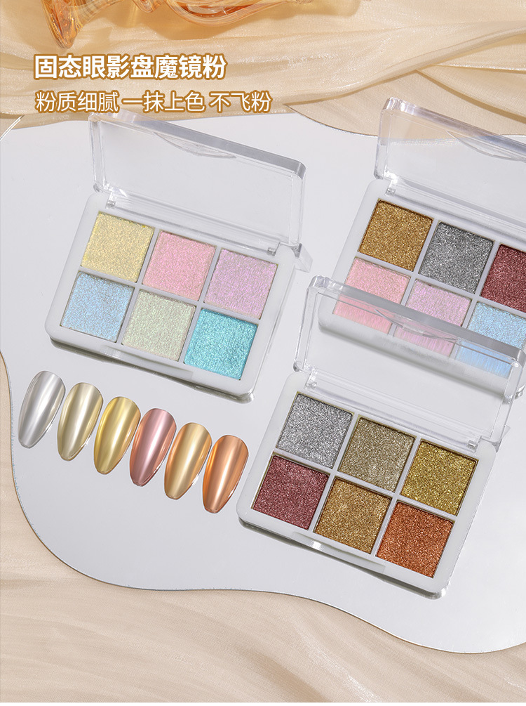 Polvo de espejo mágico sólido súper brillante Harina de espejo de uñas Aurora polvo Internet celebridad Oro Plata 6 colores metal tridimensional gancho en polvo