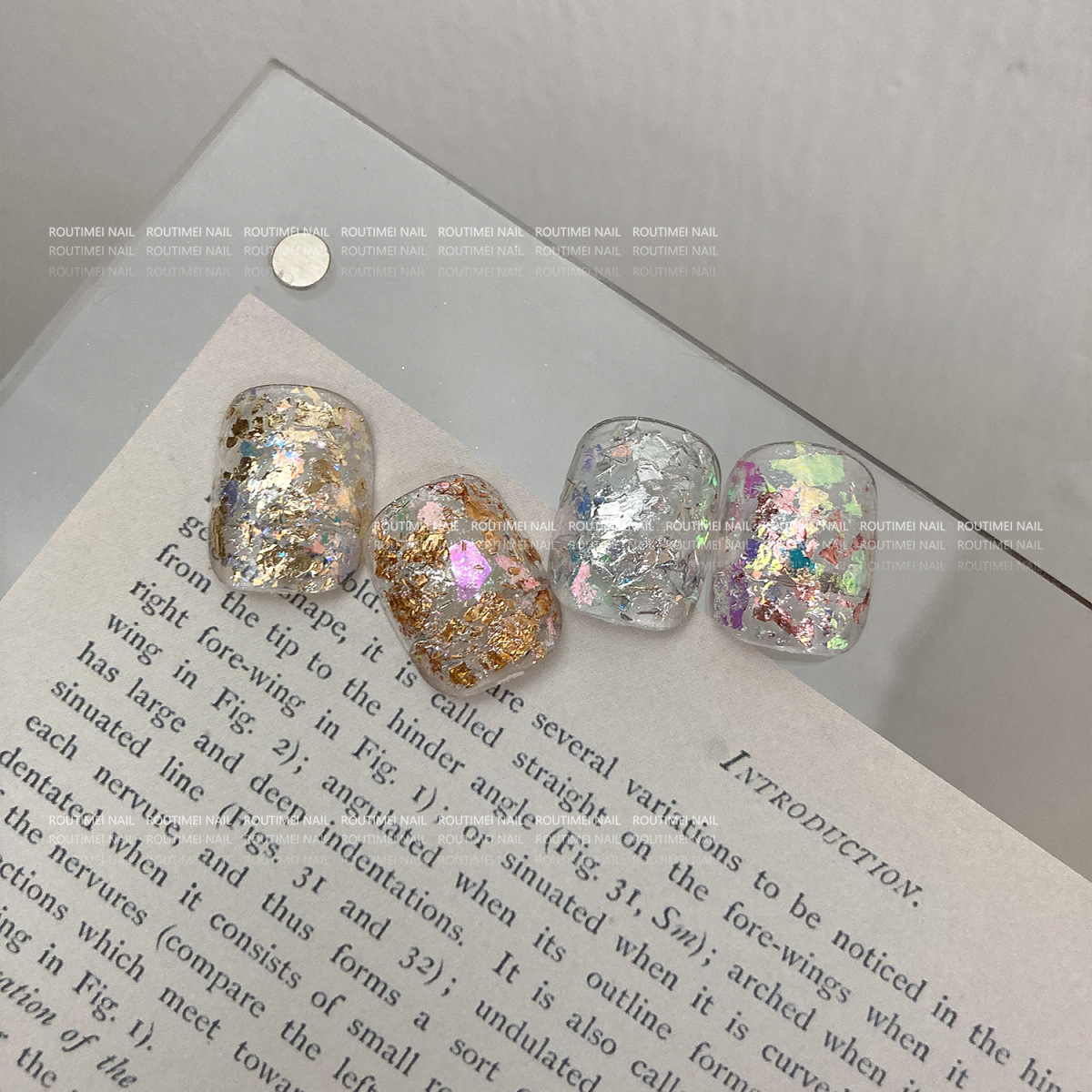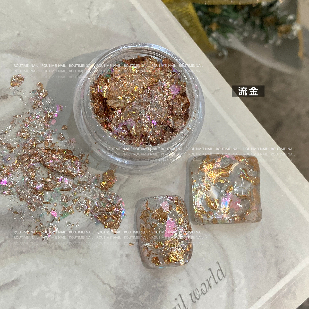 Nueva manicura sueño hielo cristal resalte Opal brocado en polvo delicado súper brillante parche de uñas japonés decorativo papel lámina oro