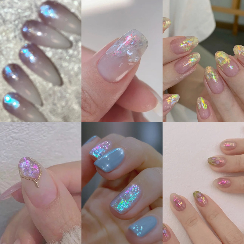 Manicura Opal polvo japonés Aurora brocado polvo fantasía polarizado hadas nieve terciopelo polvo uñas decoraciones luz y delicada