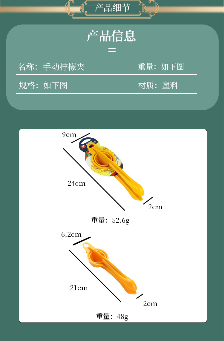 Exprimidor manual de frutas, con gancho, limón y frutas