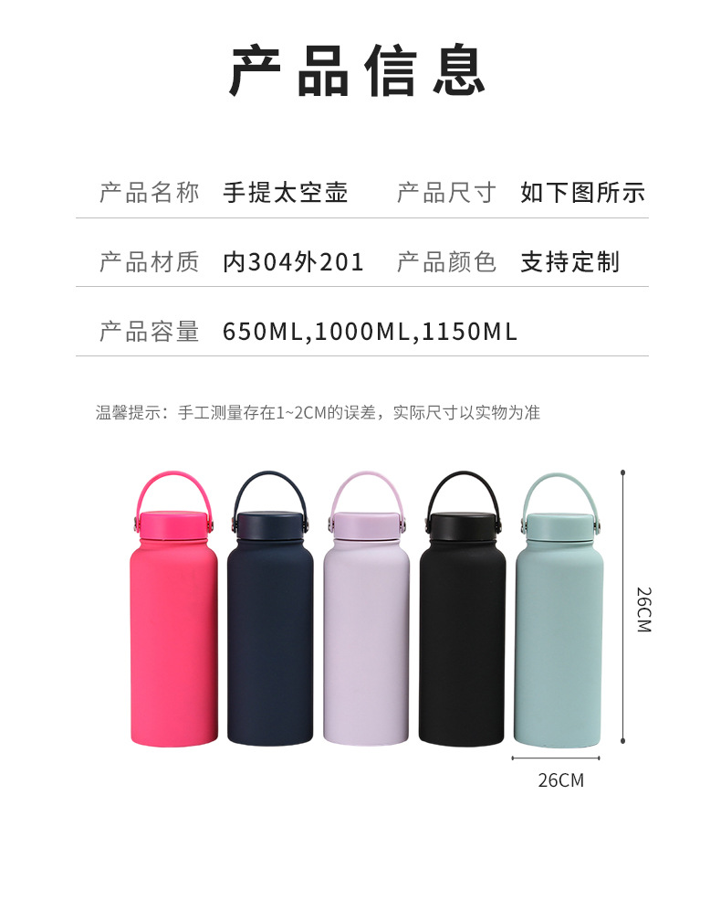 Botella de agua deportiva de gran capacidad transfronteriza, taza aislada al vacío de acero inoxidable 304, botella espacial de pintura de goma portátil para exteriores