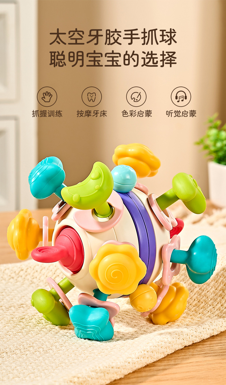 Juguete de goma para bebés, mordedor en forma de esfera, entrenamiento de agarre