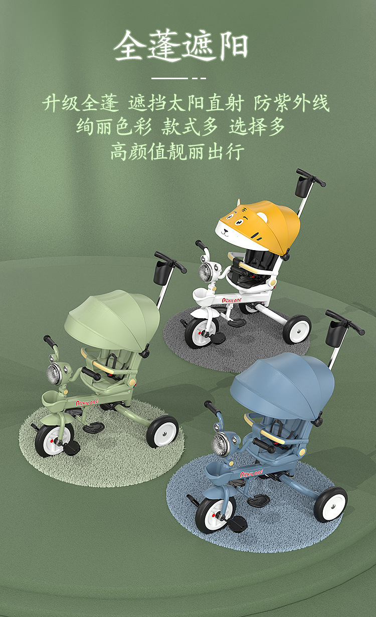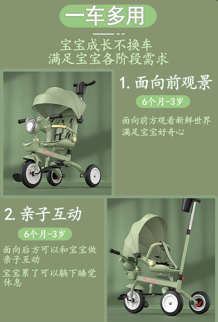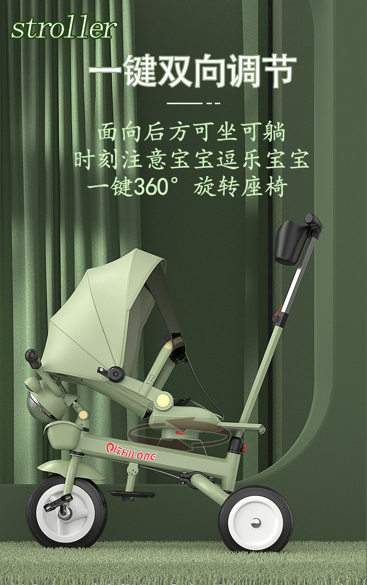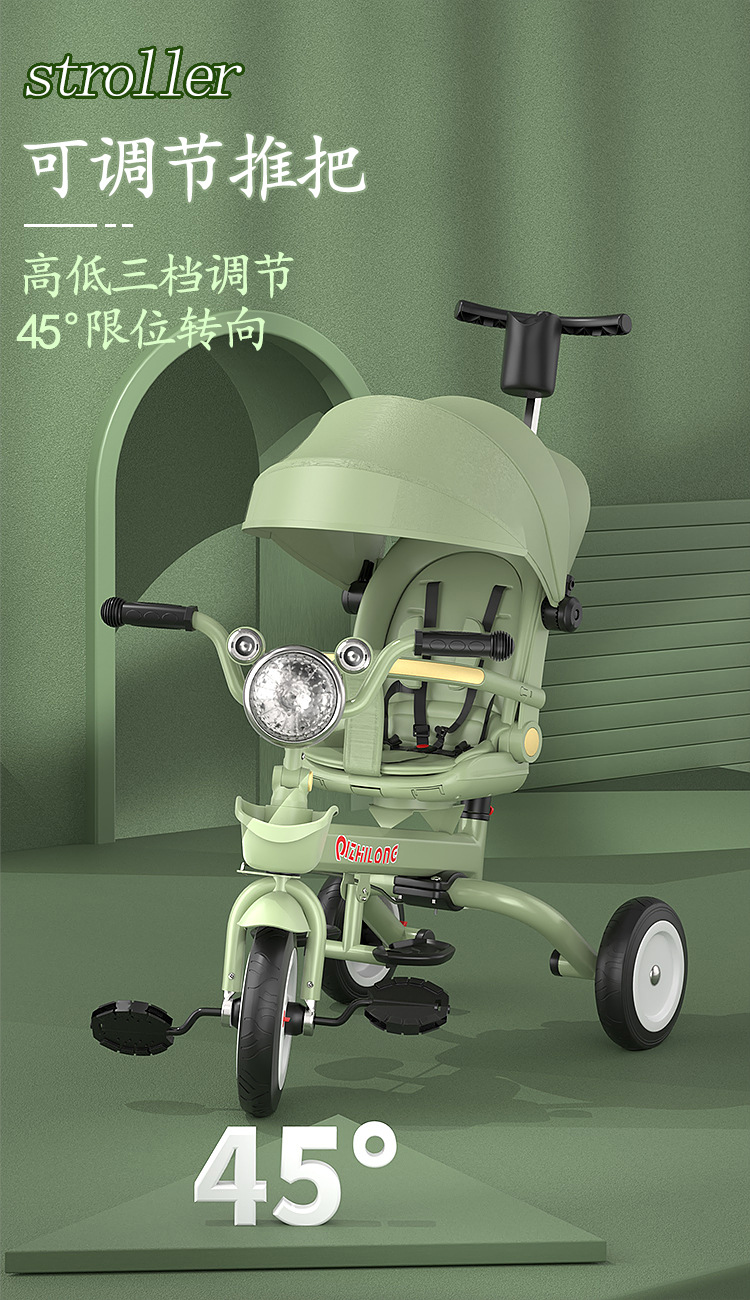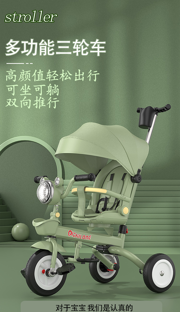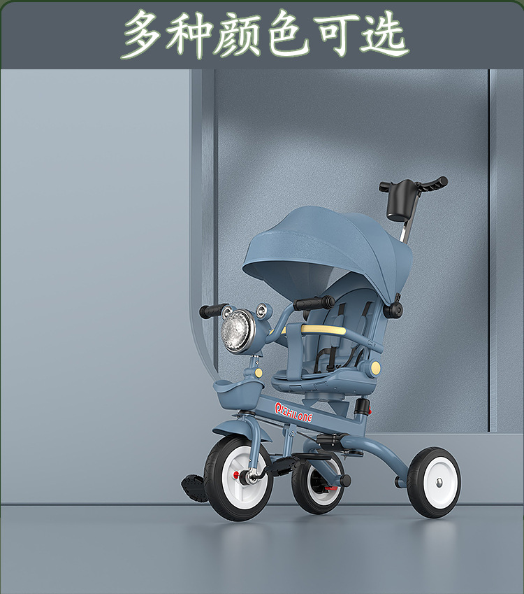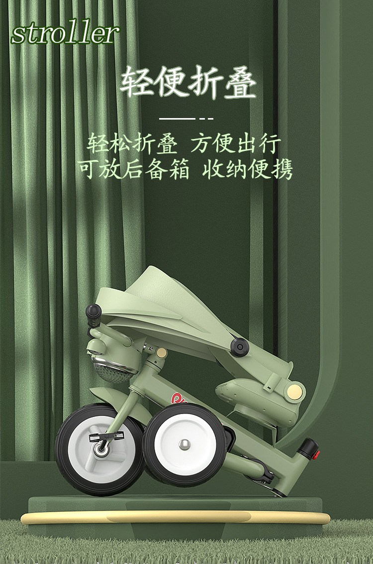 Spot al por mayor triciclo para niños multifunción plegable para bebés y niños pequeños pueden sentarse y acostarse música cochecito bicicleta