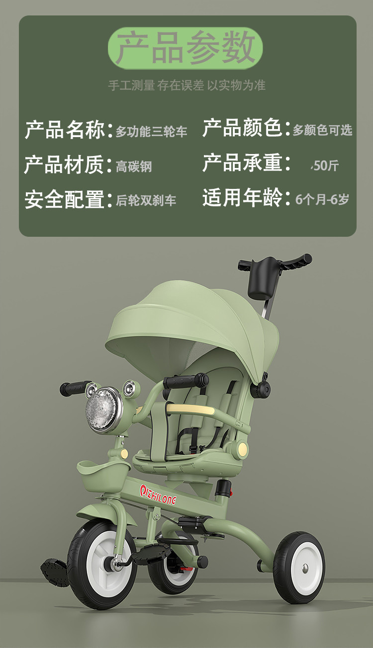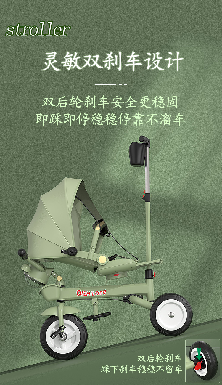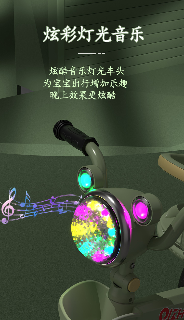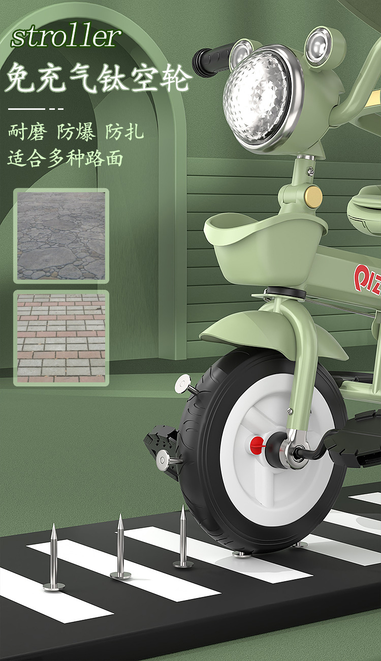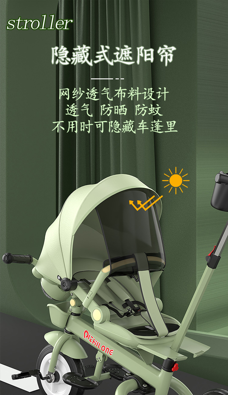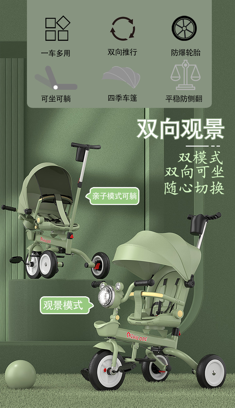 Spot al por mayor triciclo para niños multifunción plegable para bebés y niños pequeños pueden sentarse y acostarse música cochecito bicicleta