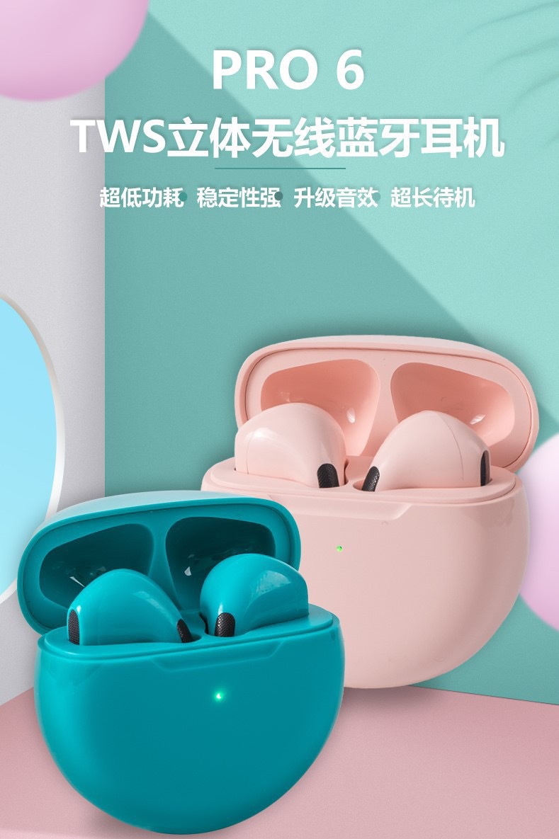 Transfronterizo nuevo Real inalámbrico Tws in-ear deportes mini juego e-deportes reducción de ruido estéreo pro6 auriculares Bluetooth