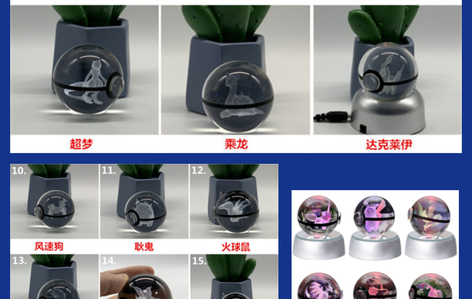 Exclusivo transfronterizo nueva serie de Navidad BOLA DE elfo Pokemon bola de cristal periférica super gigante dragón de pulverización de fuego luz nocturna