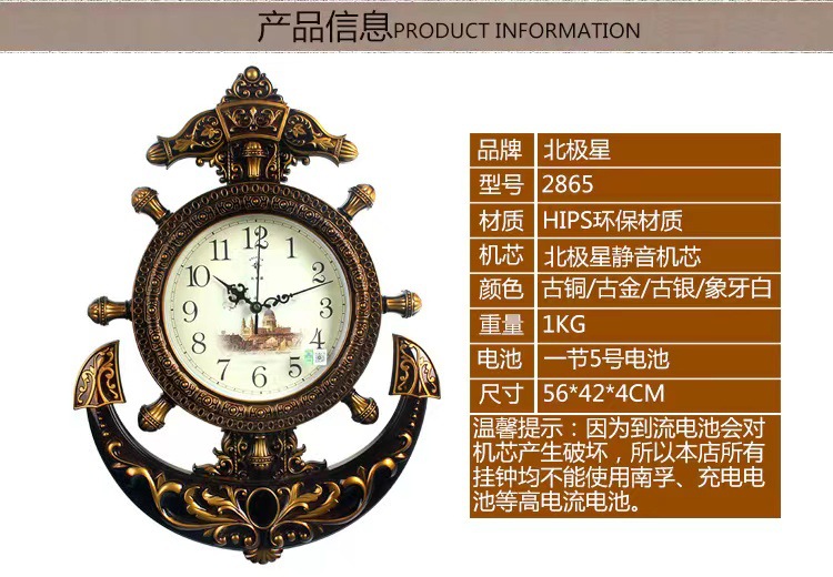 El timón de la estrella norte Reloj de pared sala de estar reloj europeo dormitorio ultra silencioso creativo pared colgante