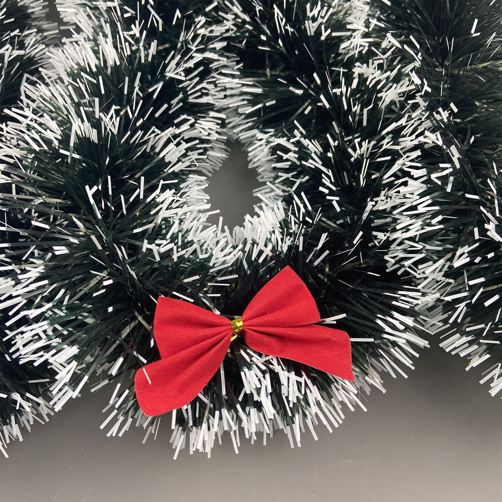 Transfronterizos nuevos 2 metros de cifrado verde oscuro borde blanco lana verde decoración navideña de color tira de flores de nieve encaje