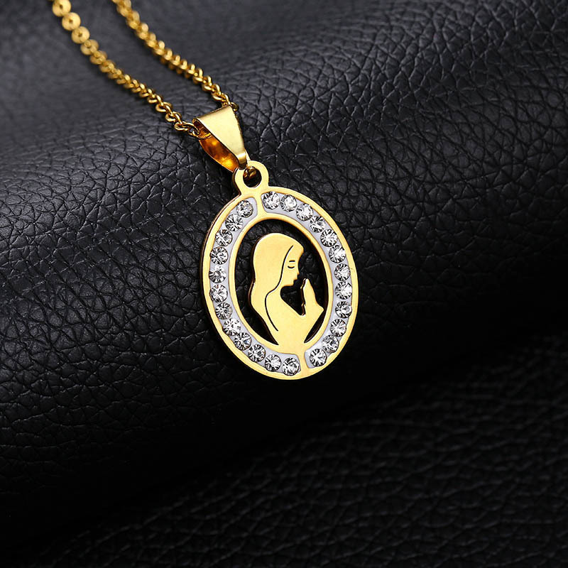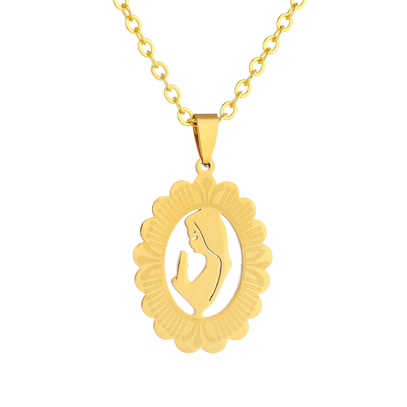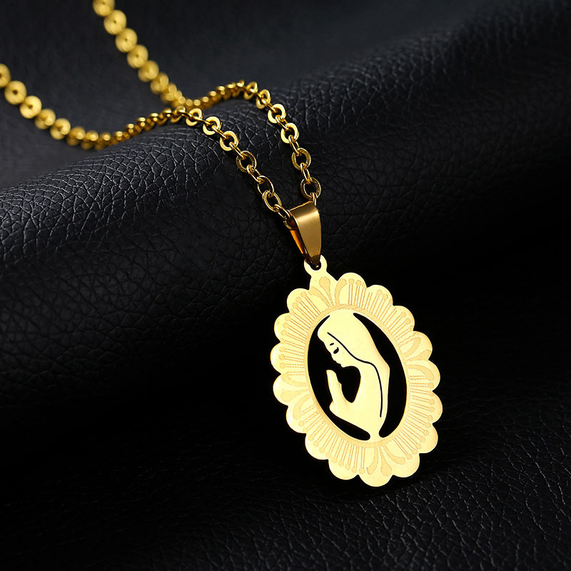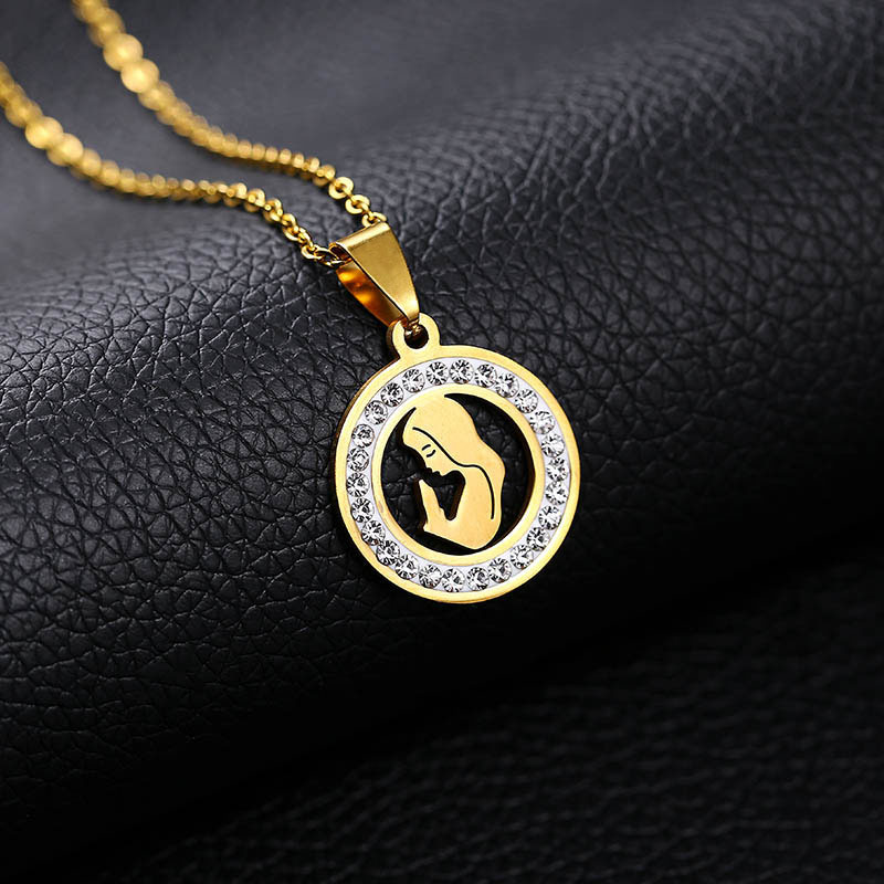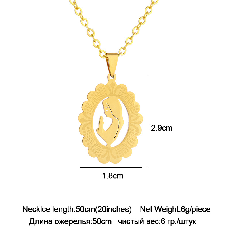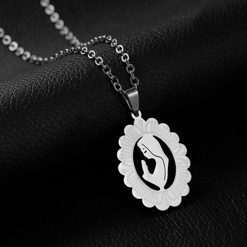 Collar de acero inoxidable con colgante de Virgen María, para mujer