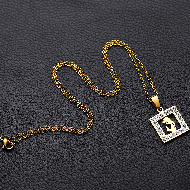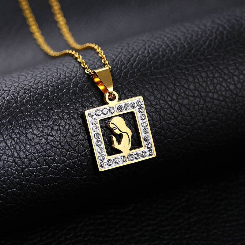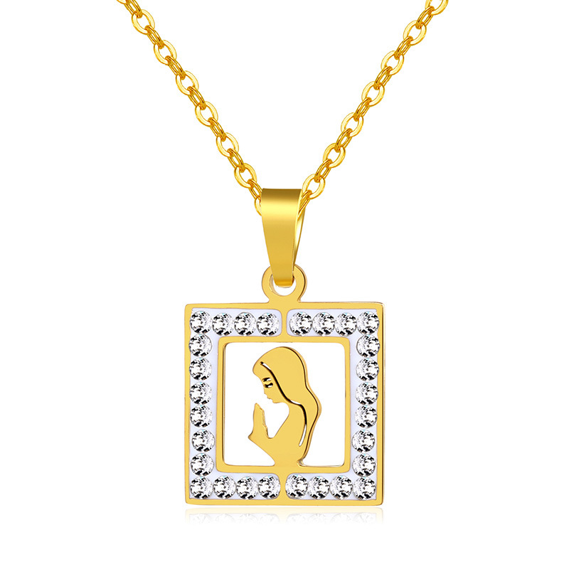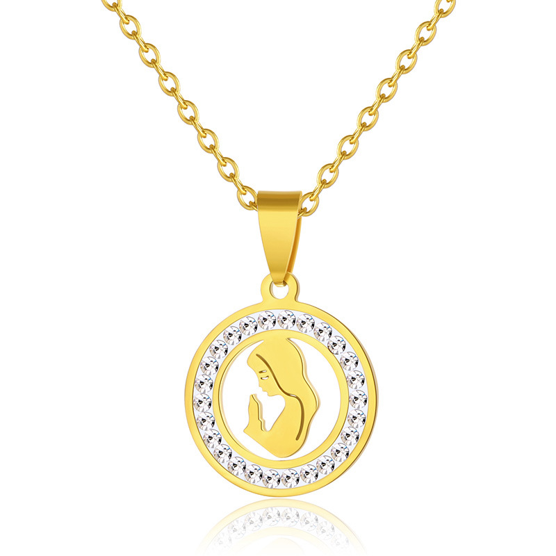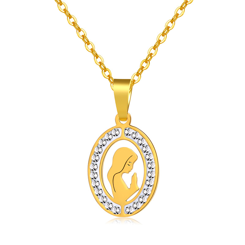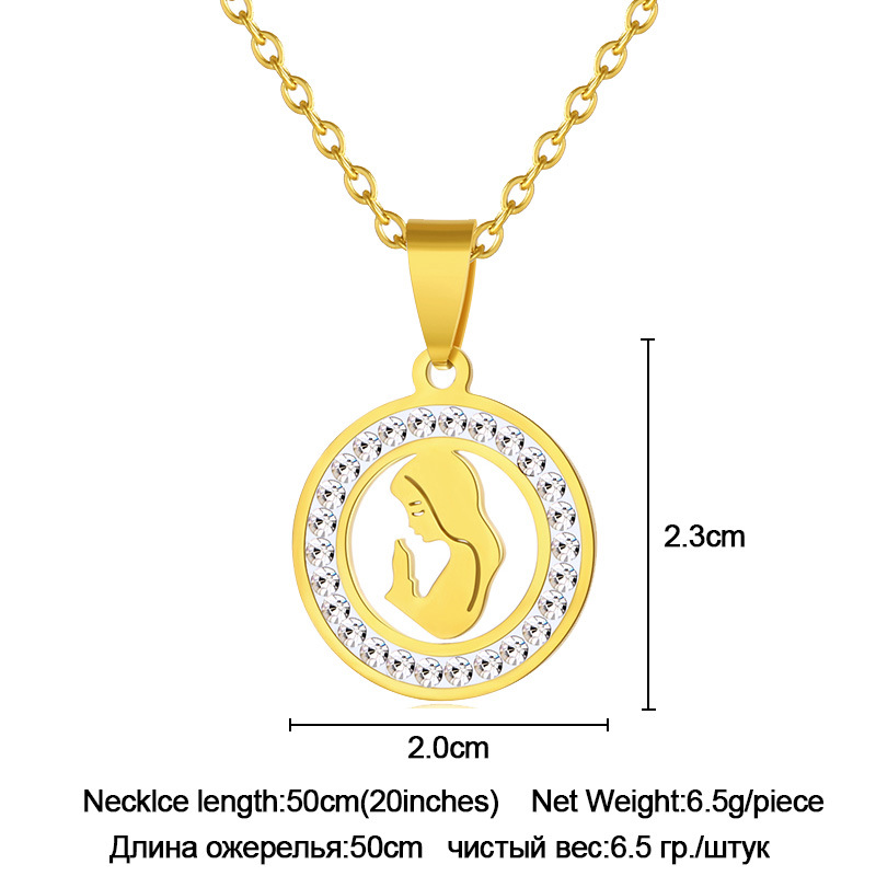 Collar de acero inoxidable con colgante de Virgen María, para mujer