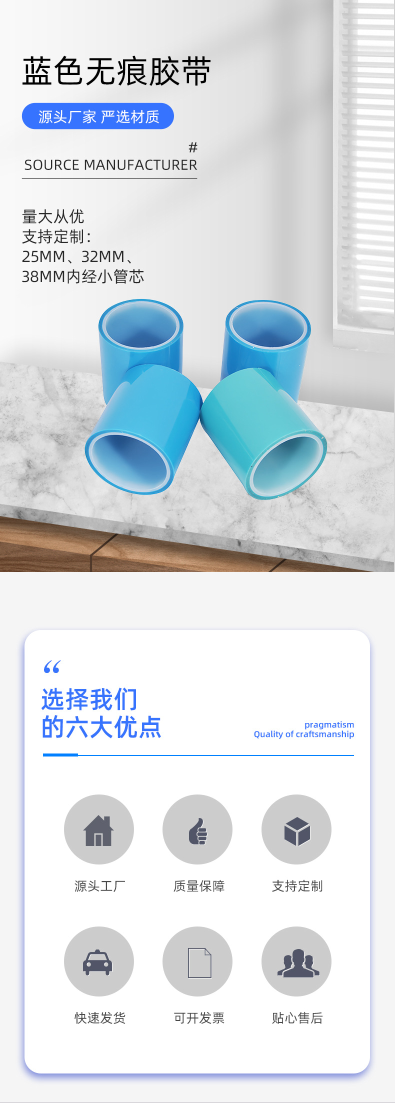 Pegamento para refrigerador azul, cinta de fijación para cajones de aire acondicionado, cinta sin costuras de alta viscosidad de un solo lado, cabello directo de fábrica de núcleo de tubo pequeño