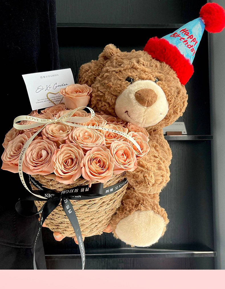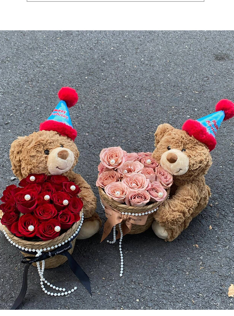 Día de la madre castaño oso abrazo cubo bricolaje material hecho a mano embalaje floral regalo de cumpleaños ritual confesión romántica