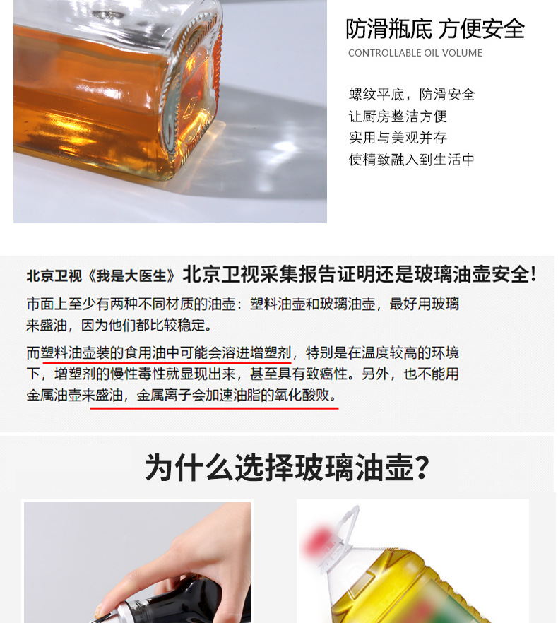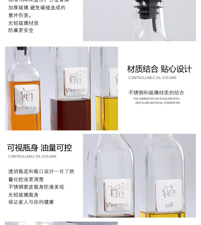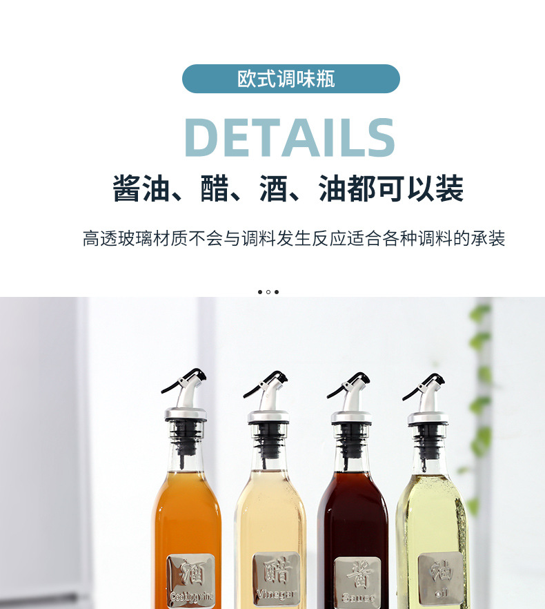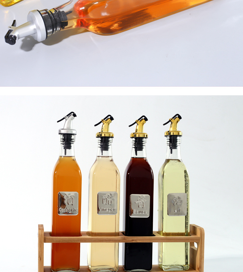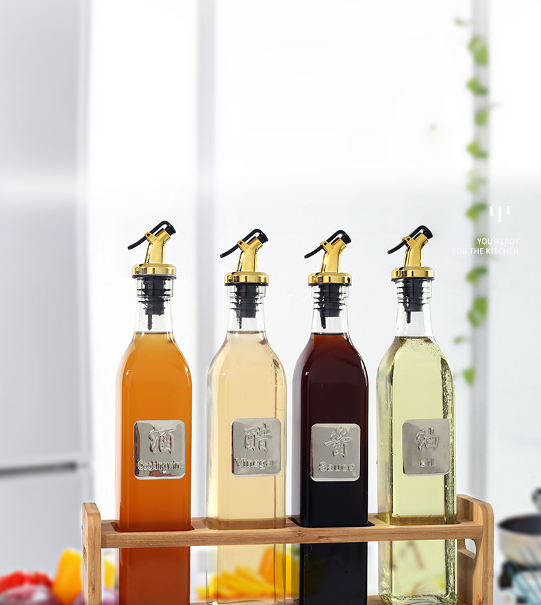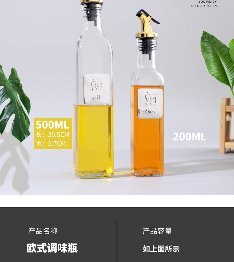 Botella de condimento de cocina olla de aceite de vidrio cuadrada a prueba de fugas sub-botella prensa salsa de soja botella de vinagre 500ml botella de salsa de soja