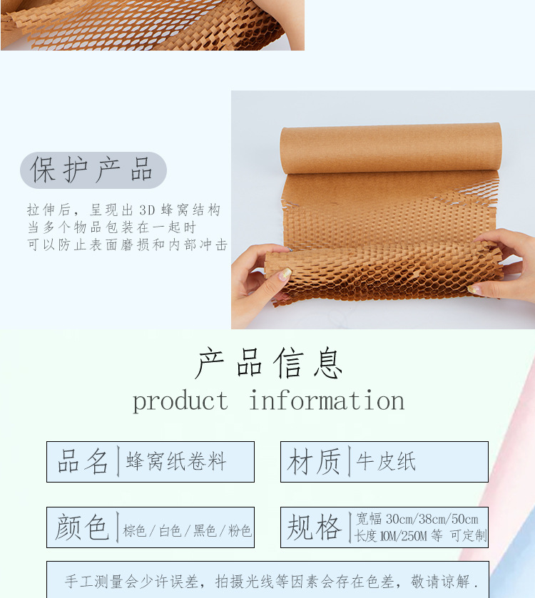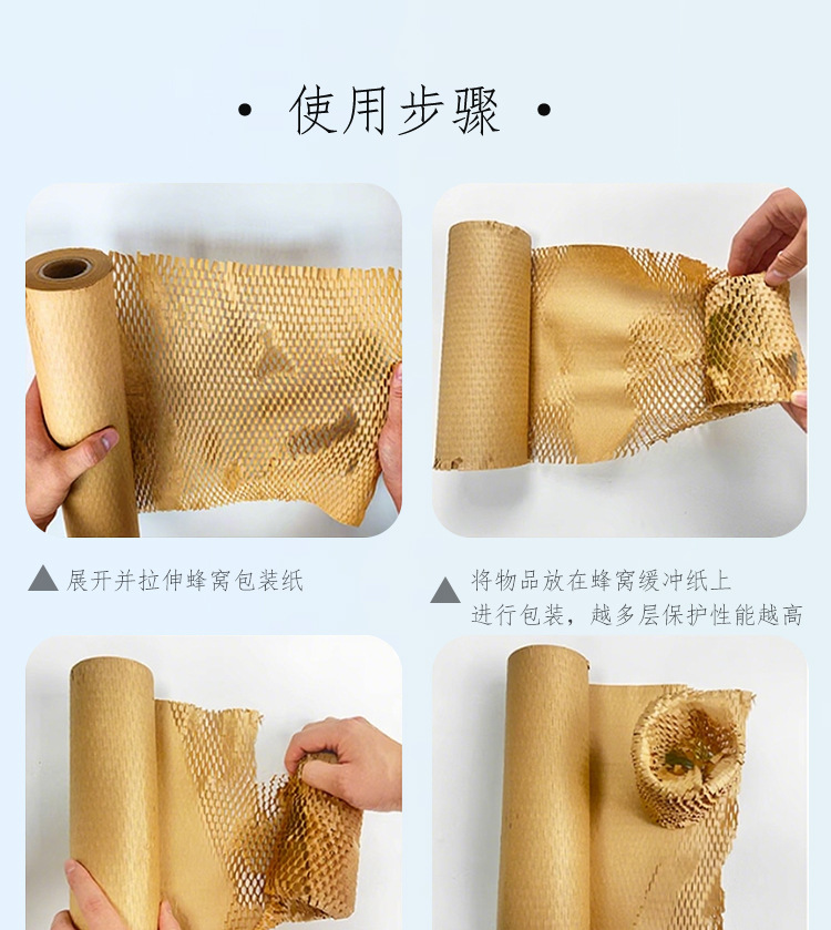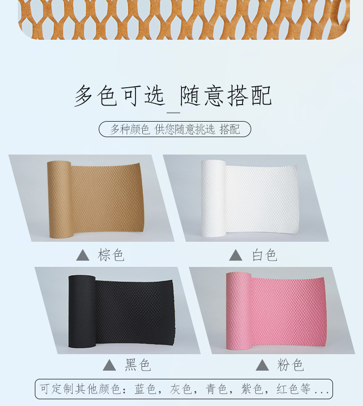 Pulpa de madera cruda logística expresa caja de regalo frágil buffer embalaje malla papel panal papel de embalaje de ramo de papel