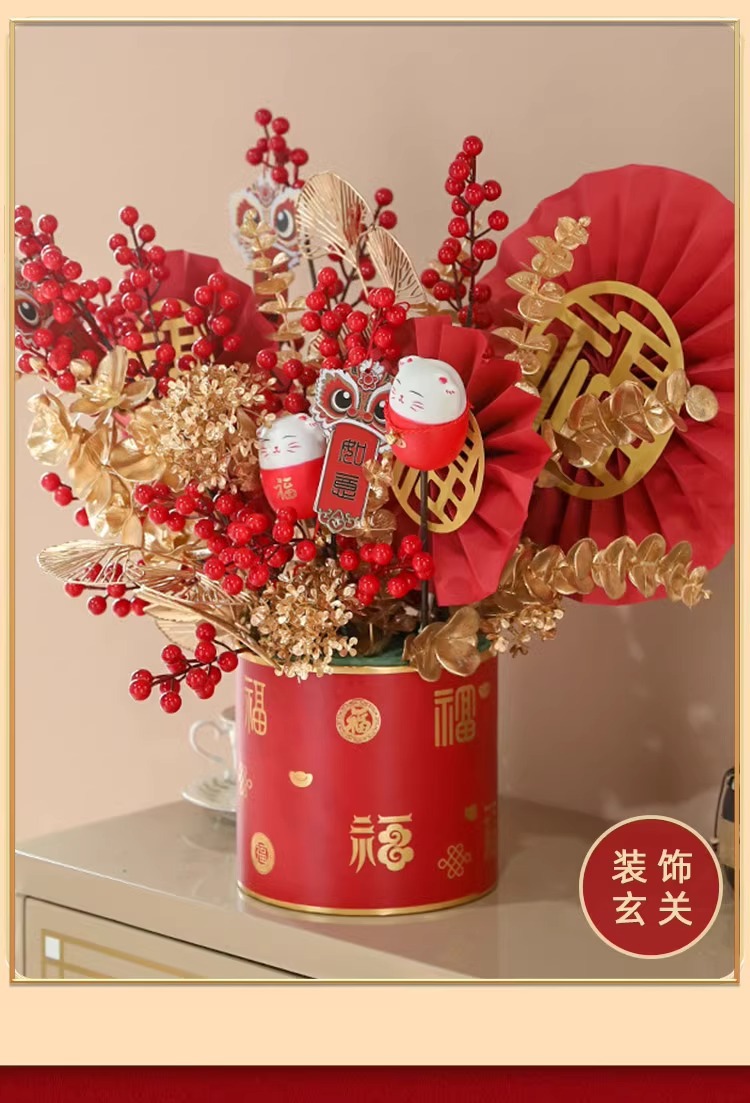 2025 Año Nuevo Cubo de bendición Cubo de abrazo Inauguración de inauguración de la casa Cubo de bendición de flores de Año Nuevo Cubo de bendición de sauce plateado de acebo Decoración de sala de estar Cubo de franela