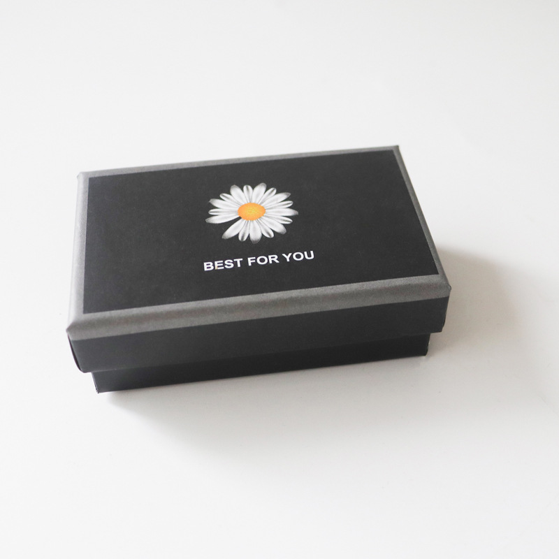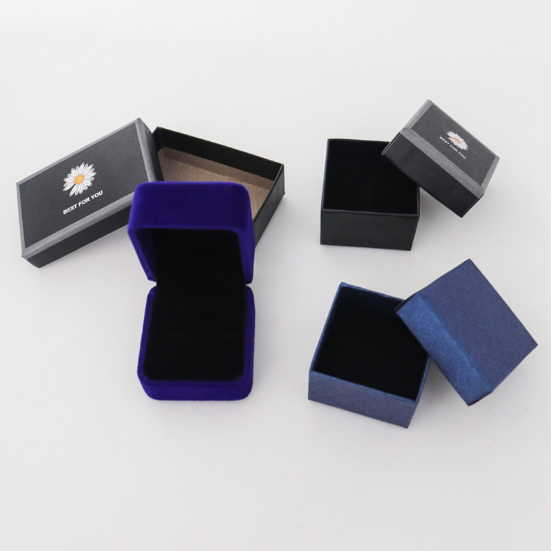 Nueva caja de papel pequeña de margarita, joyería de franela de alta gama, joyería, anillo, pendientes, caja de embalaje universal al por mayor