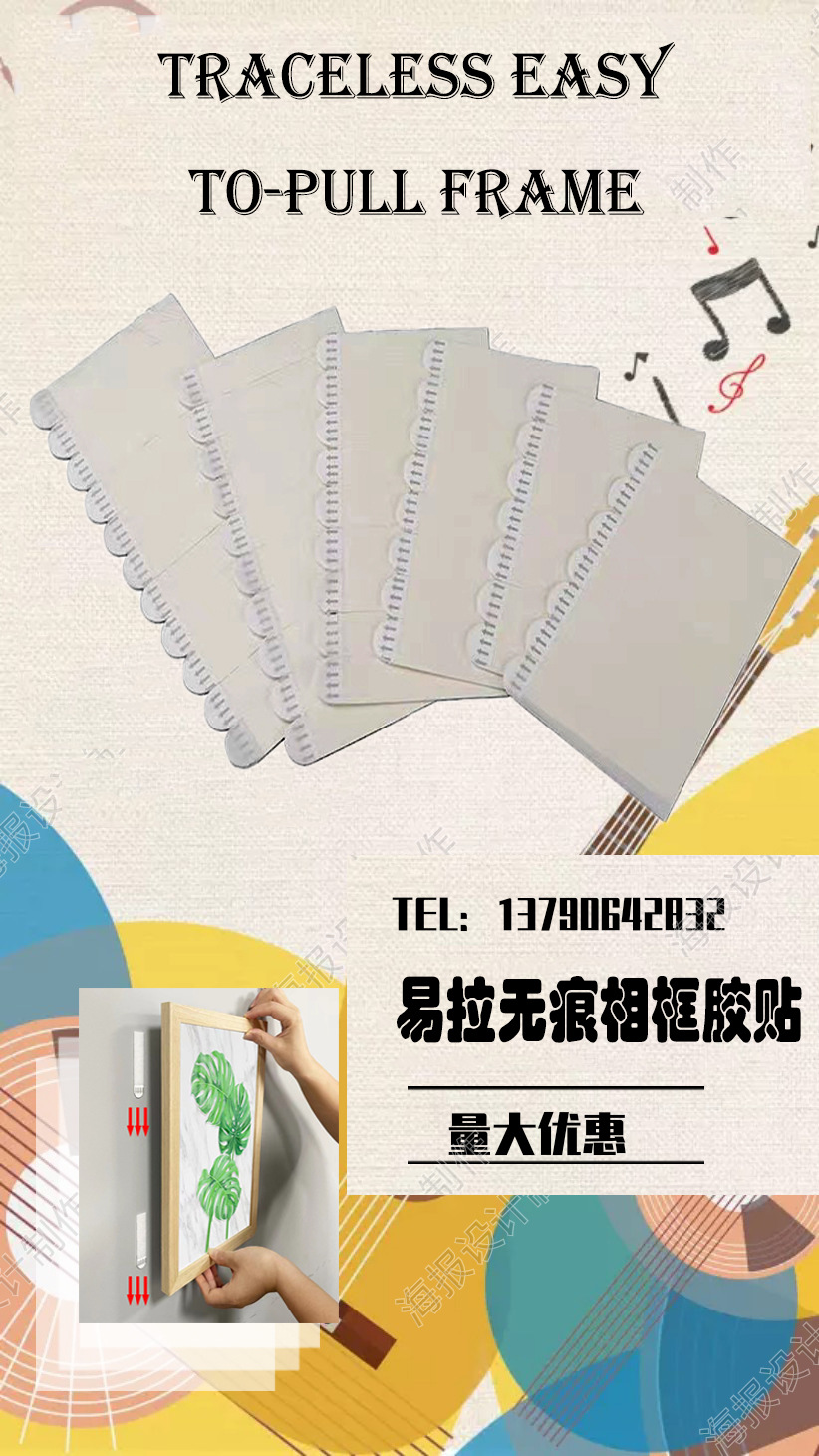 Clips adhesivos para marcos de fotos sin marco, para venta al por mayor transfronteriza, sin clavos, removibles, cinta de doble cara fácil de quitar, fuerte y altamente adhesiva.