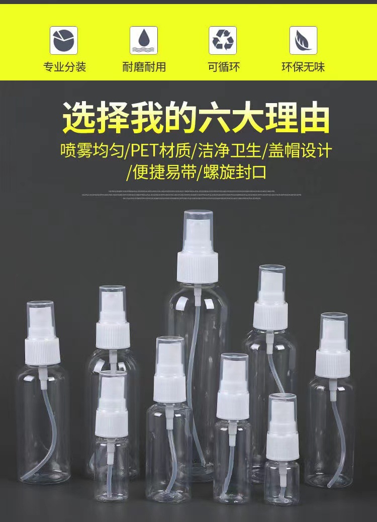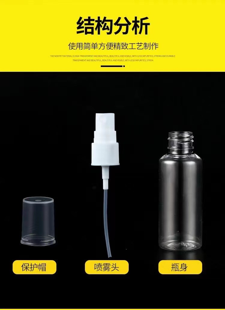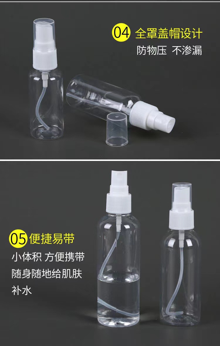 Botella de spray de plástico alcohol pequeña regadera transparente niebla fina perfume alcohol sub-botella maquillaje viaje portátil pequeña botella