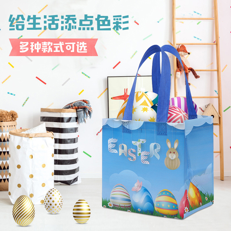 Transfronterizo en stock bolso de mano de Pascua colorida fiesta de caza de huevos bolsa de regalo reutilizable bolsa no tejida recubierta