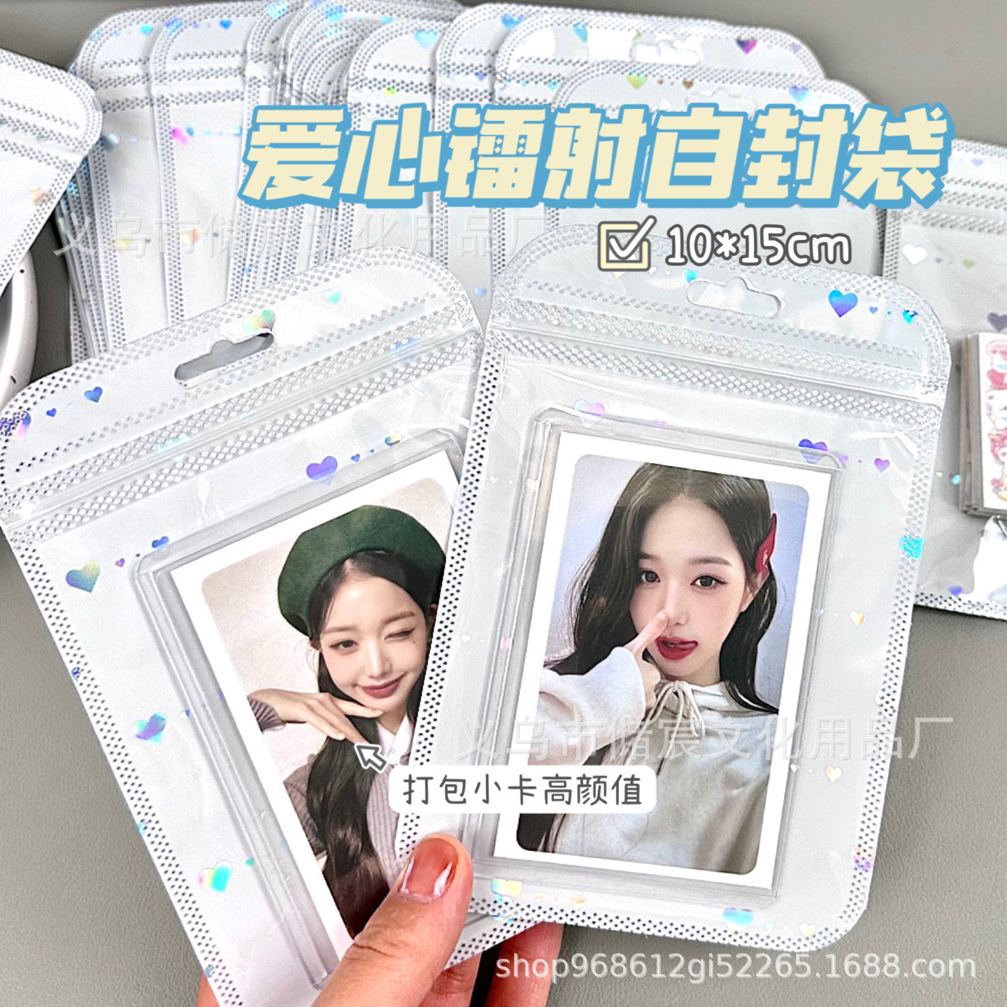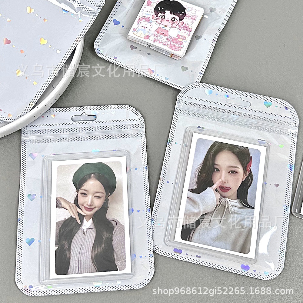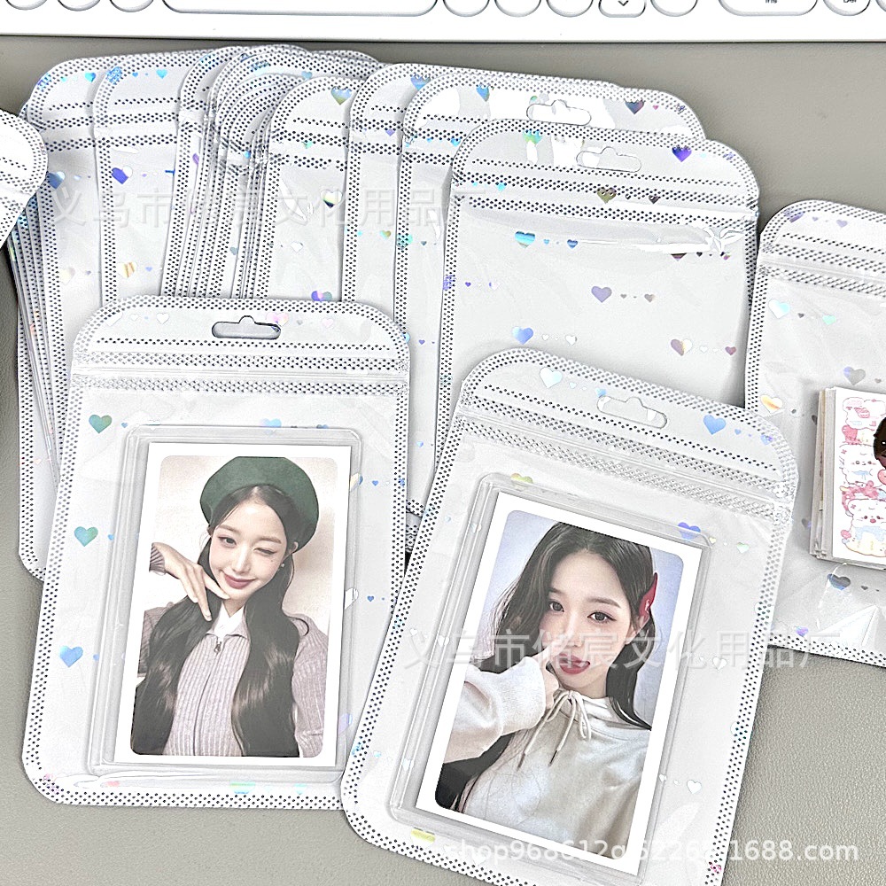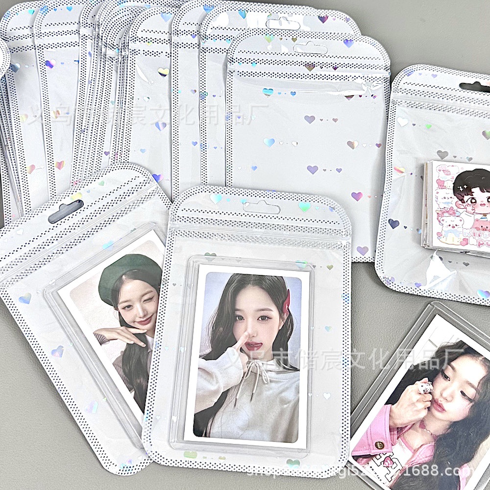 Bolsa autosellante de láser de amor de alta apariencia ins embalaje de tarjeta bolsa de regalo tarjeta pequeña mano cuenta Material embalaje bolsa de sellado